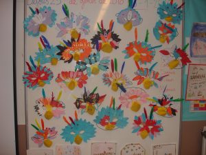 Pupils have created a bird mask and a poster inspired in Carnival.