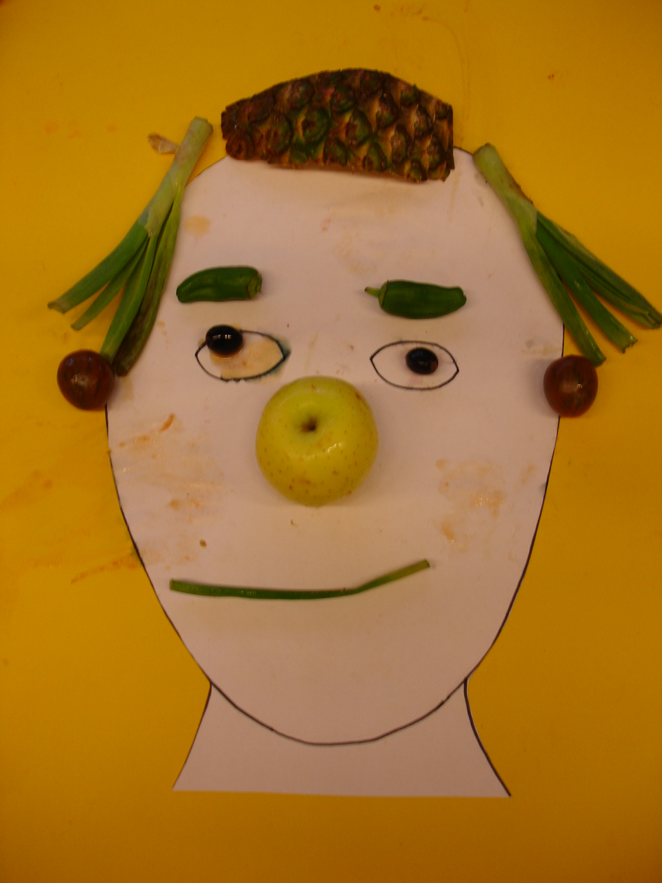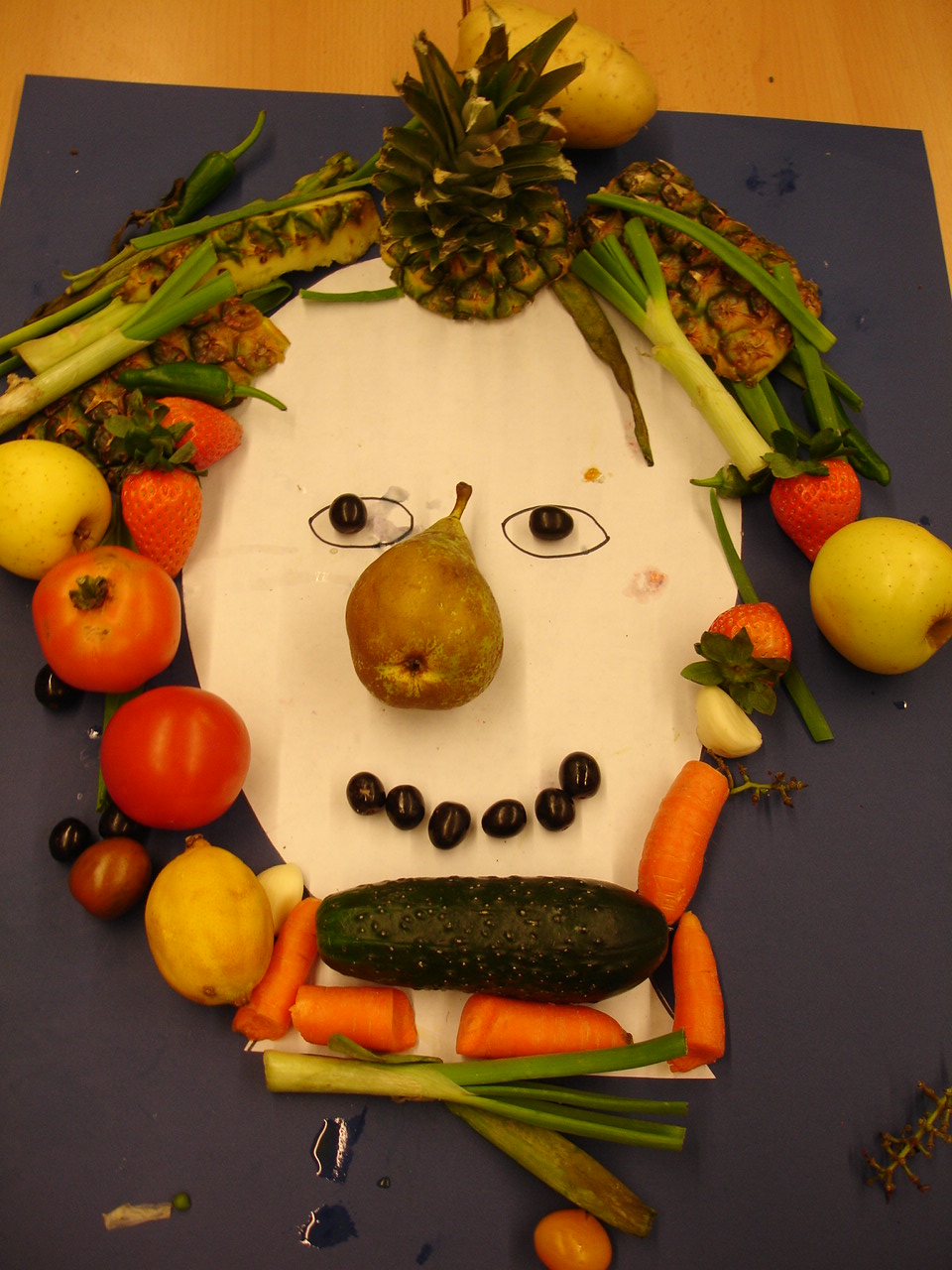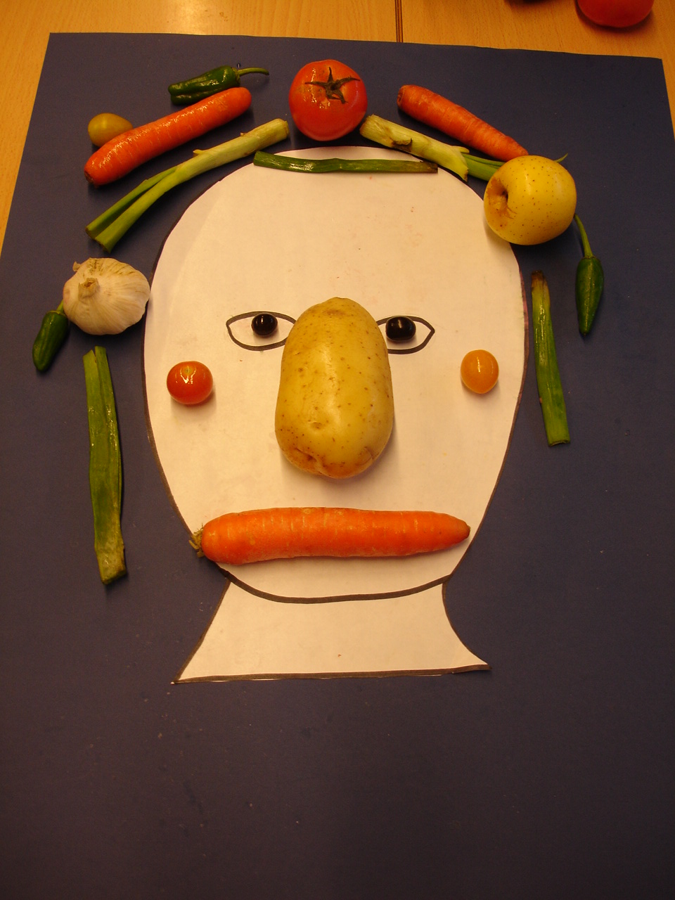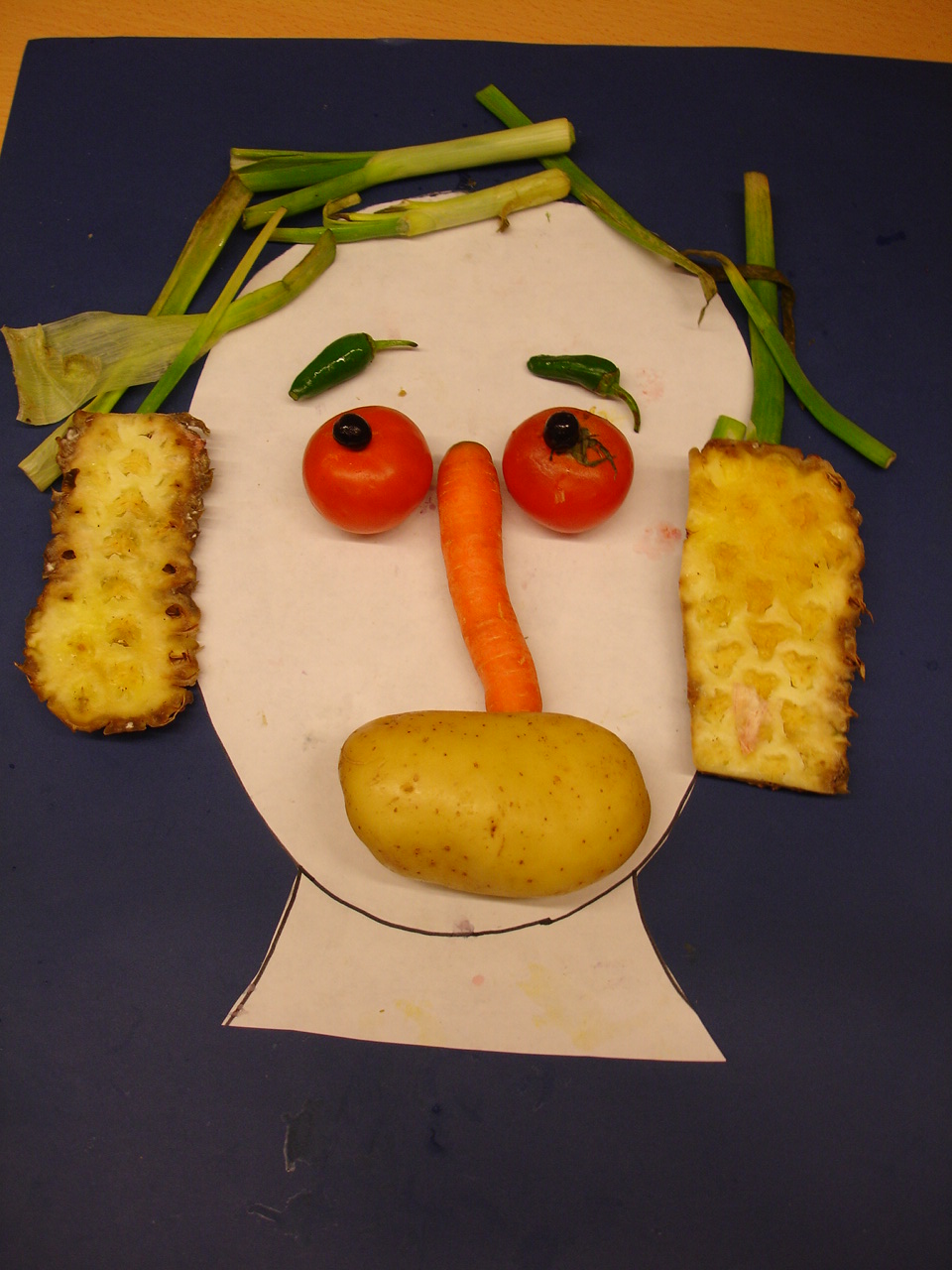 In 1st grade, pupils have used fruits and vegetables in their artworks. Click on the link to see all their portraits: