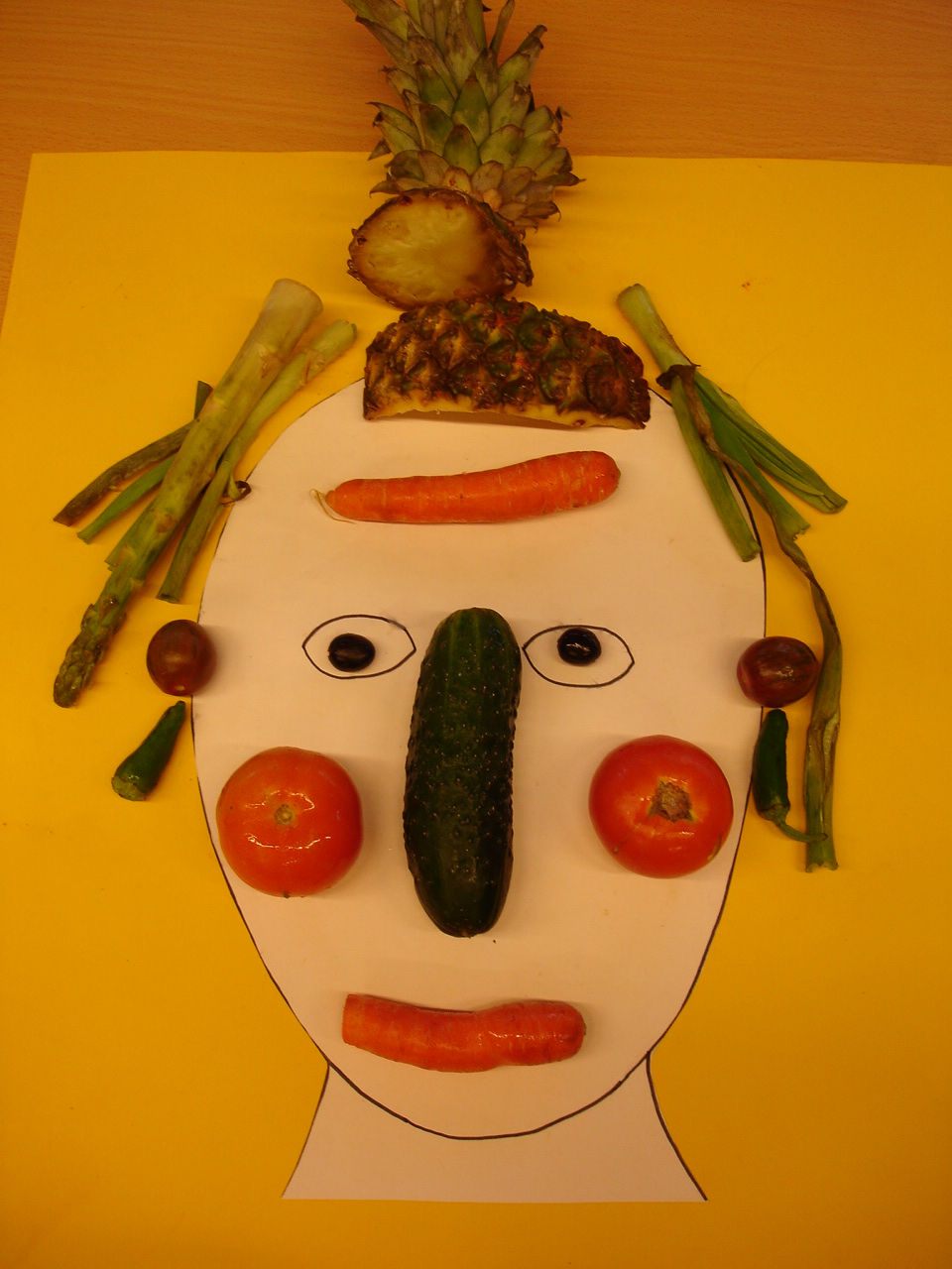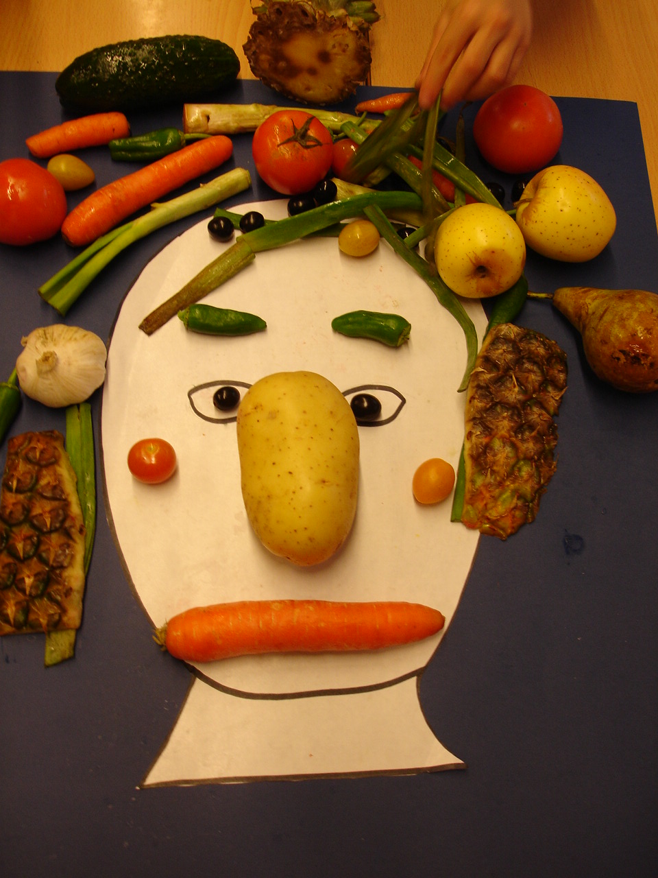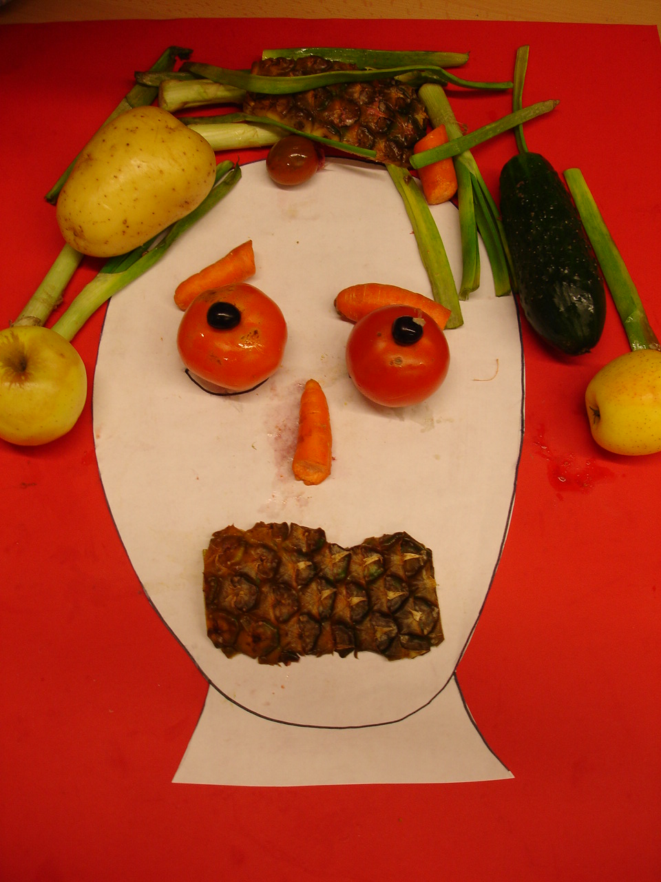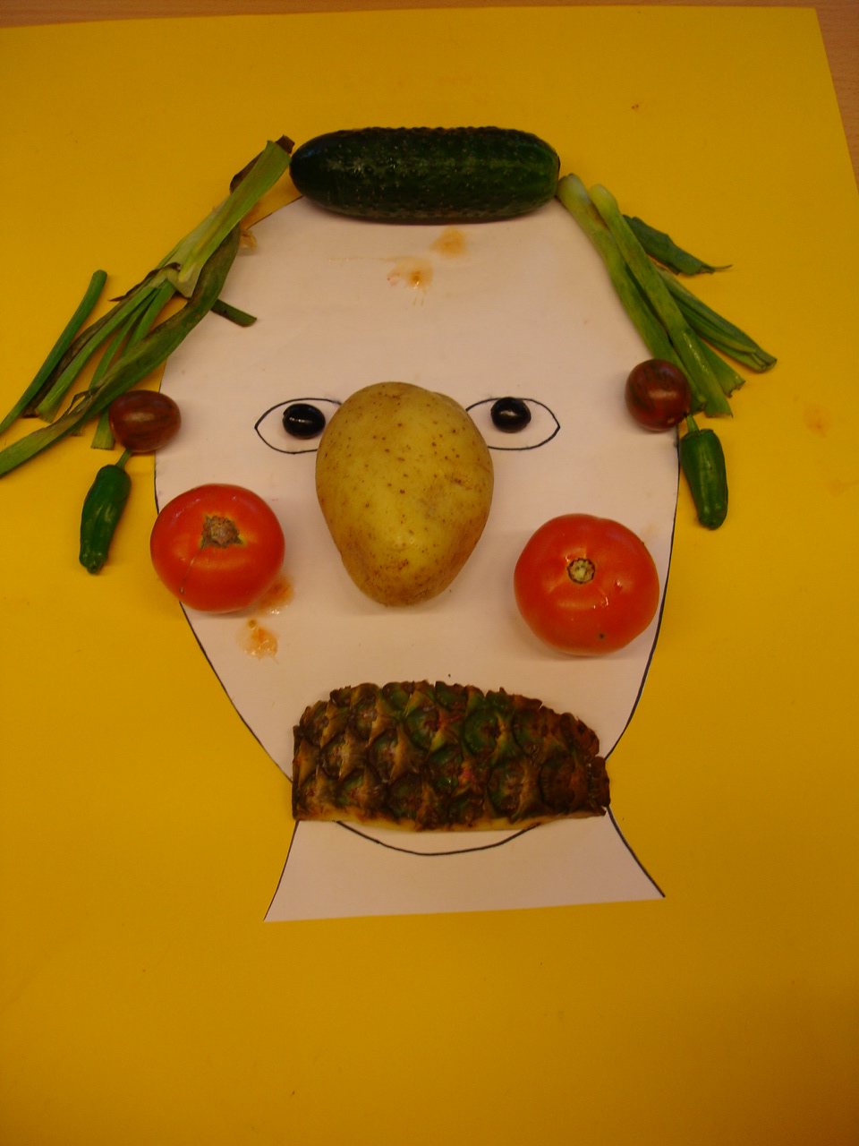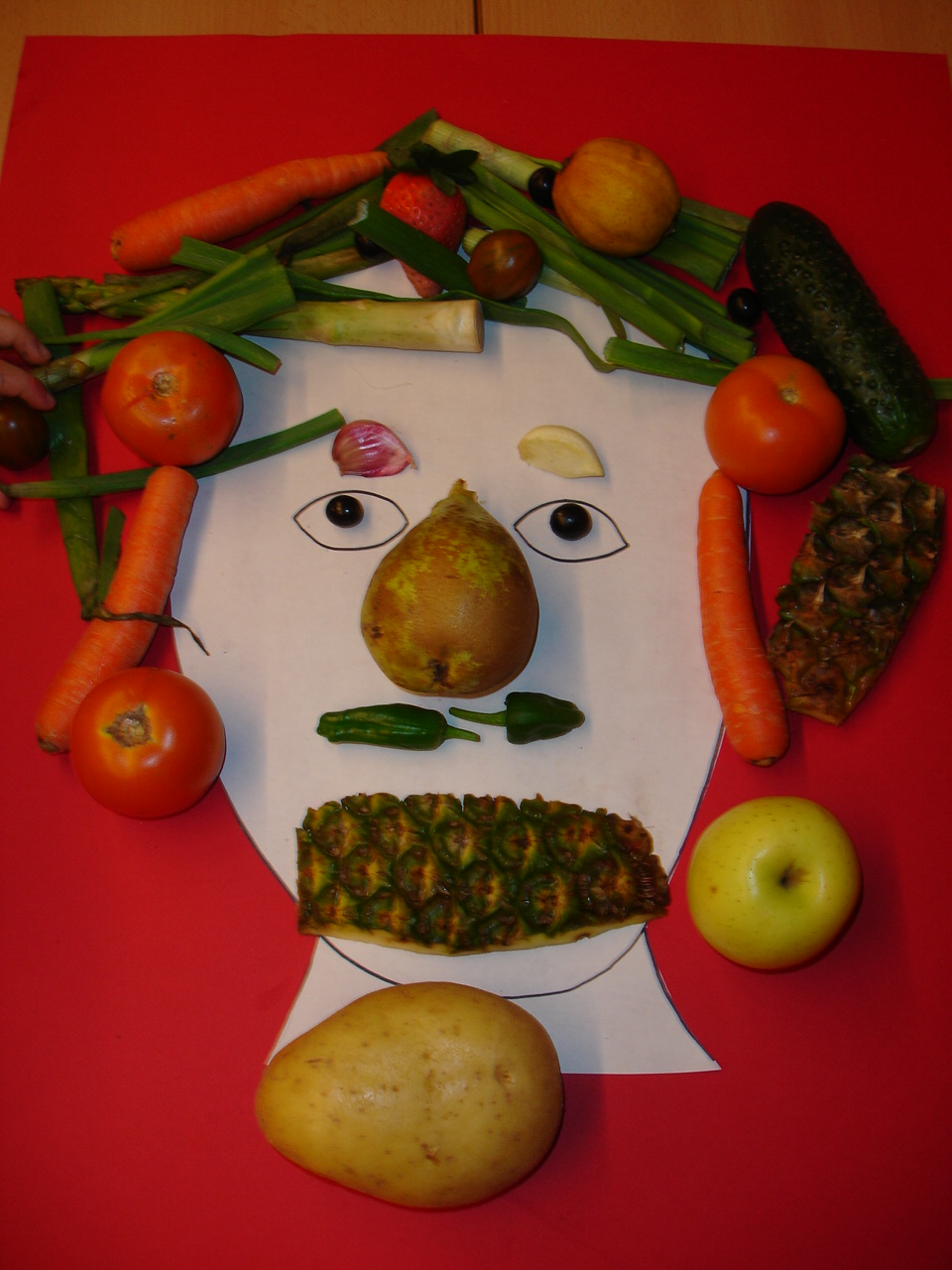 In 1st grade, pupils have used fruits and vegetables in their artworks. Click on the link to see all their portraits: