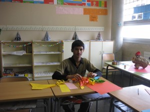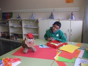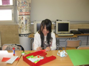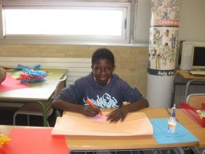 Vam començar a preparar-ho tot unes tres setmanes abans i el resultat el podeu veure a les fotografies. A més, els alumnes de l’Aula Oberta van posar al costat de la parada de llibres una altra parada on venien: sobres i paper per escriure missatges d’amor o d’amistat, objectes de fusta fets per ells i petites roses de roba amb un imperdible per posar a la jaqueta.