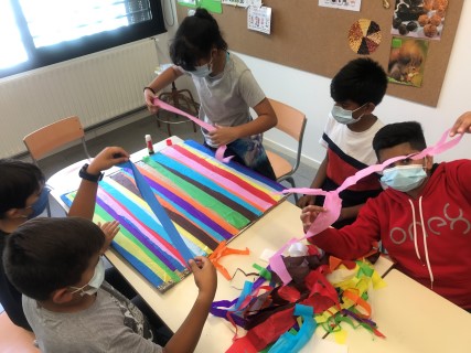 Estem elaborant una súper carpeta per l’Aula d’Acollida i aprofitem per treballar els colors, la frase, el diàleg i, sobre tot, la cohesió.