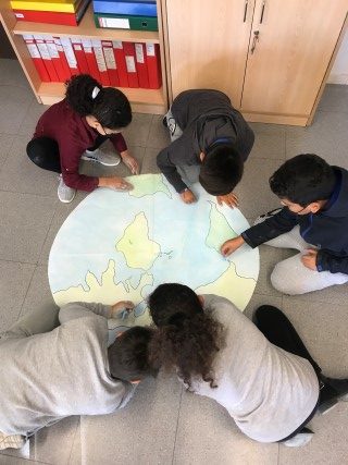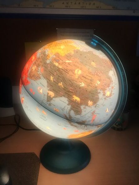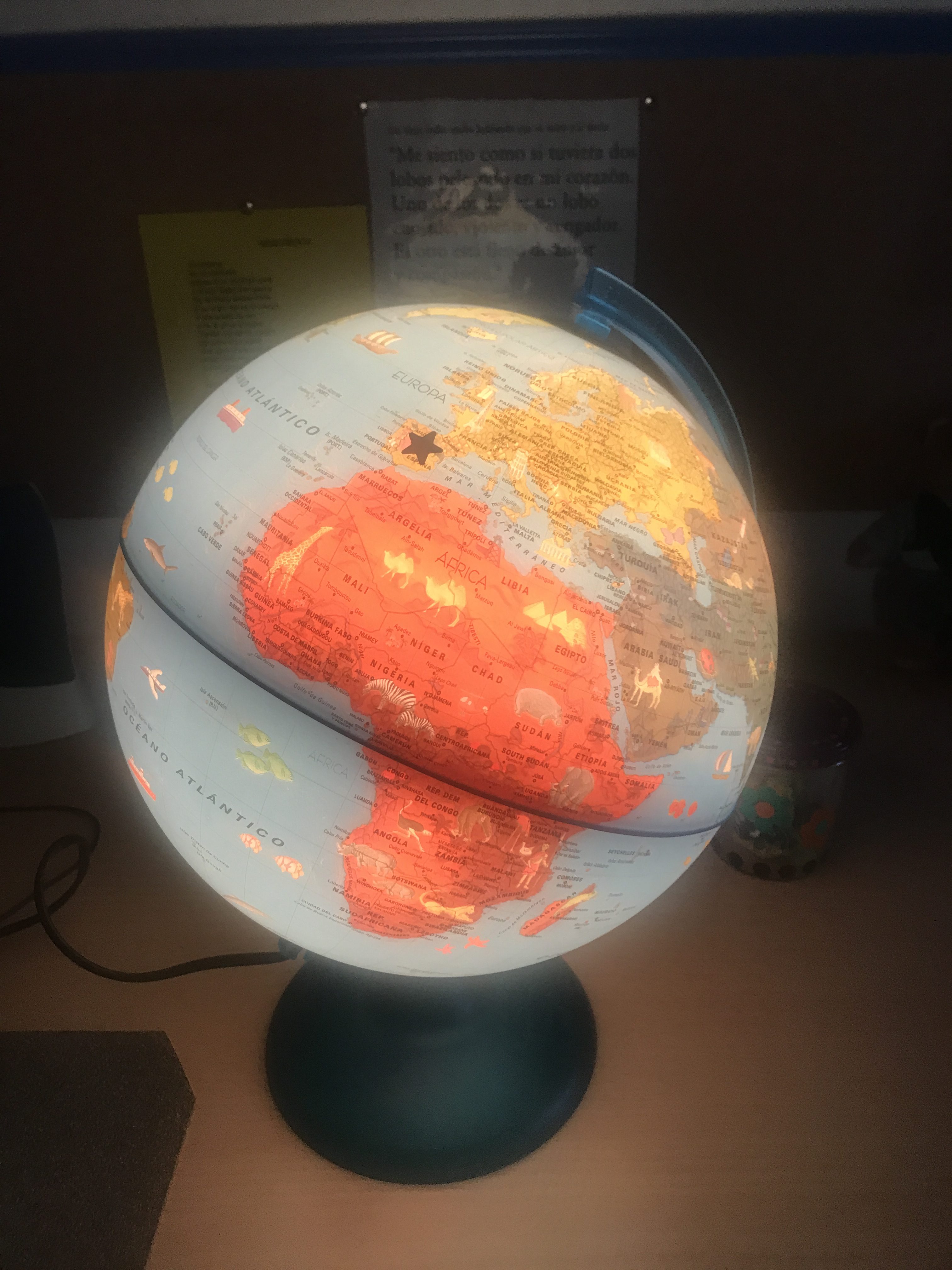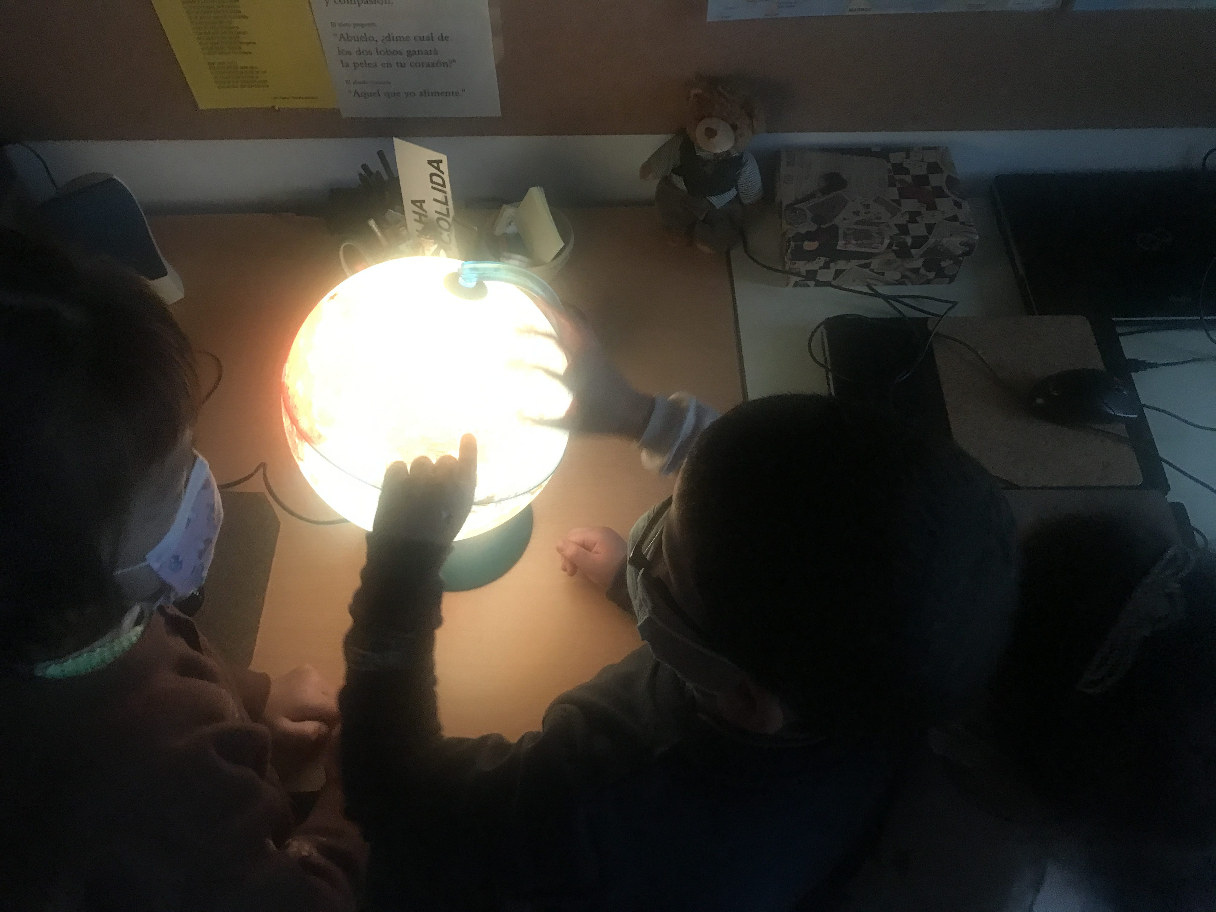 Ens encanta explicar d’on venim i que els nostres companys ho sàpiguen. Aquesta vegada hem fet servir una bola del món molt especial, ens hem posat a les fosques i encès el llum!
