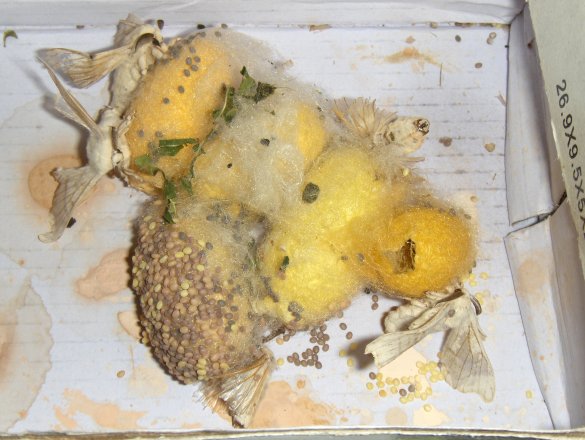 Com era previsible, els cucs de la classe dels LLEONS han fet els seus capolls de seda i per una petita escletxa han sortit transformats en papallones. Ara estan posant ous per tal de que l’any vinent gaudim d’una nova generació de cucs.
