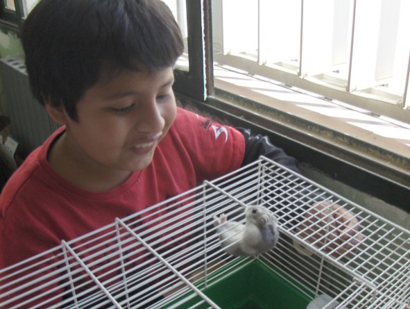 La classe de tercer-B ha dut un hàmster per a l’aula de ciències. Es tracta d’una femella embarassada i per tant esperem amb il·lusió les noves cries. Li mirarem la panxa cada dia i en tindrem cura de la seva alimentació i higiene. També encetarem un projecte per tal de conèixer millor la nostra mascota i fer-ne un seguiment del part i la lactància.