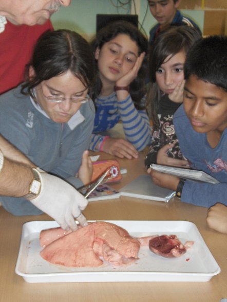 Els alumnes de 6è van observar l’aparell respiratori d’un mamífer, un be. Vam poder comprovar, bufant la tràquea, com els pulmons s’inflaven.