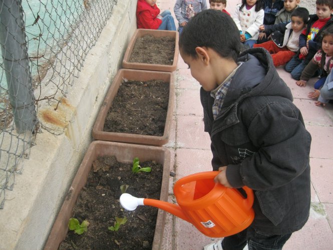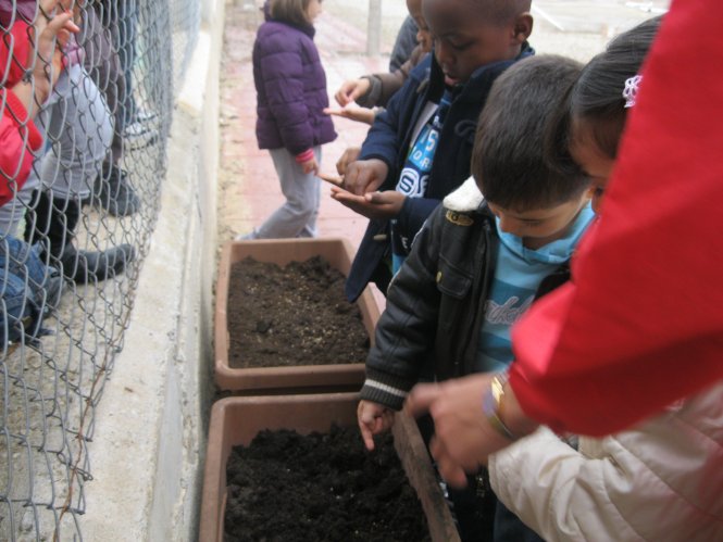 ELS NENS DE P-5 TENEN EL SEU PETIT HORT. HEM PLANTAT FAVES, ESPINACS I ENCIAMS PER CUIDAR I OBSERVAR EL SEU CREIXEMENT.