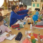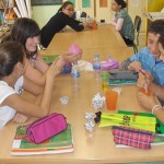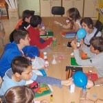 Avui l’alumnat de sisè ha fet a l’aula de ciències l’última experimentació programada del curs 2.012-13. Hem fet i observat un canvi químic: amb vinagre, bicarbonat i un globus els nois i noies han vist com el globus s’unflava per la reacció del vinagre i el bicarbonat omplint el globus de diòxid de carboni. També han comprovat que el globus amb diòxid pesava més que un unflat amb aire. També ens ha donat temps per a fer una dissolució normal i una de saturada amb sucre. Finalment hem barejat dos líquids amb diferent densitat: oli i aigua; hem separat l’oli de l’aigua pel mètode de decantació. Han aprés i s’ho han passat bé, ara només falta que facin les fitxes i les presentin. Ha sigut un bon any a l’aula de ciències.