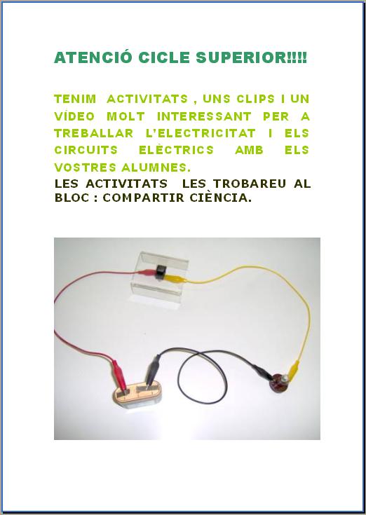 http://youtu.be/VBsYP9yORI4 Aula ciències de l’escola Sant Salvador de Tarragona 2014. Projecte l’electricitat és divertida “la granja”. Alumnes de 6è C de primària.