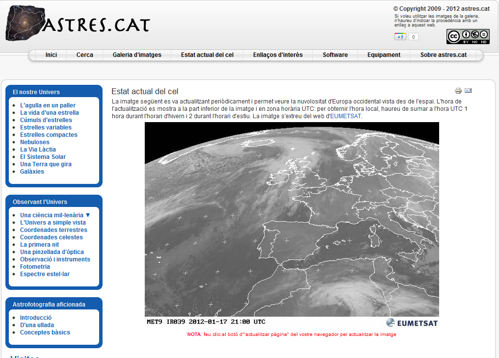 Estat actual del cel Publicat el 17 gener 2012 per rpuyol Prova a veure el cel i els estels sense contaminació lumínica en aquesta web. LINK: