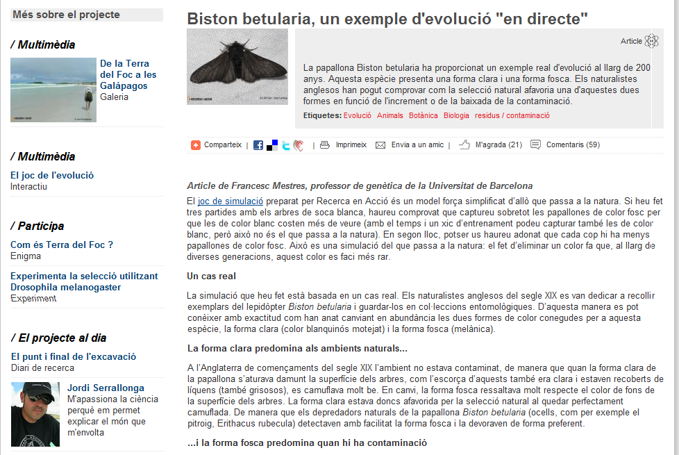 Pots  experimentar  sense  moure’t de  casa. Només cal  que  segueixes  aquest  enllaç  i cliquis  damunt  “joc de simulació”. http://www.recercaenaccio.cat/agaur_reac/AppJava/ca/articles/divulgacio/article/20091217-biston-betularia.jsp