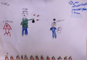 Avui ha estat un dia de màgia. En Gabriel (14 anys) amb aquest TEXT: Un món màgic us explica com ha estat aquesta diada de màgia. l’Henar i en Didier amb els seus dibuixos i textos.     Va ser un matí fantàstic.