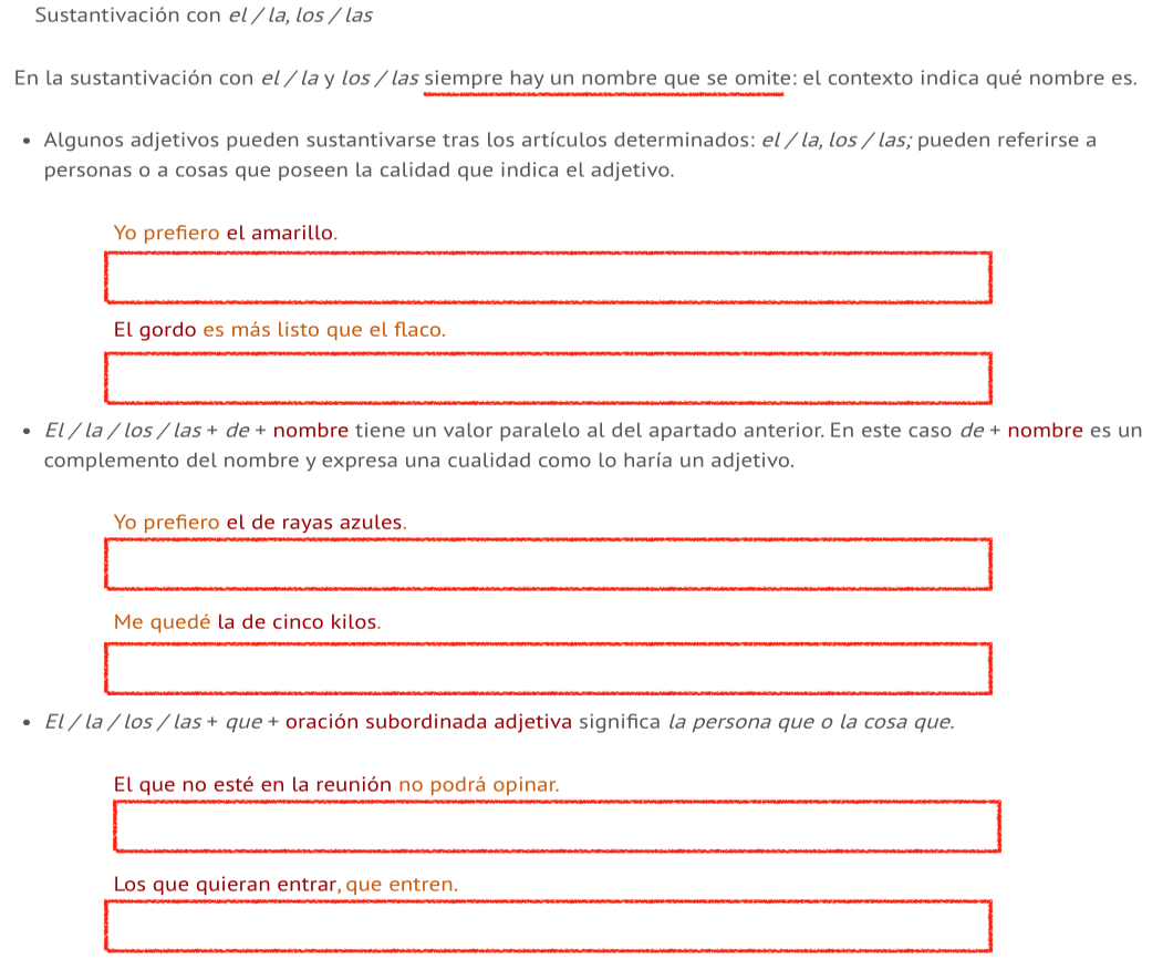 Añado un par de enlaces para profundizar este aspecto, y los presento en clase. Los dejo en el apartado Otras prácticas con el nombre de Sustantivación 1 y Sustantivación 2 y también aquí y aquí.