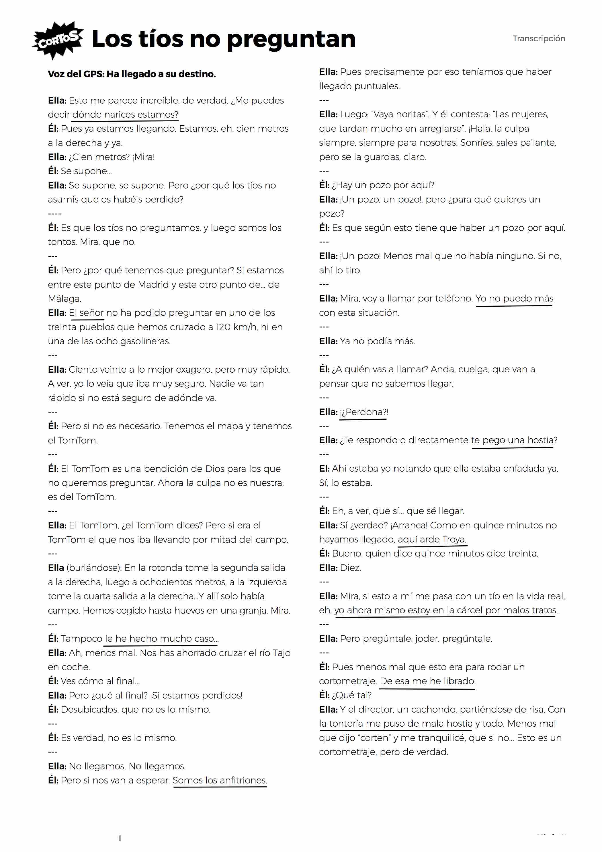 Para acabar la sesión, iniciamos un trabajo sobre el vídeo. “Los tíos no preguntan” que se puede ver en el enlace del mismo título en el apartado vídeos y aquí. Nos ayudamos de este material, que acabaremos de trabajar el martes.