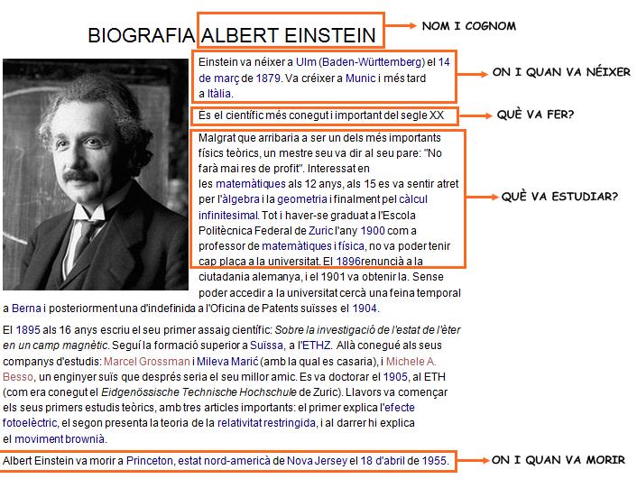 Ara obrirem un document amb la seva biografia i afegirem una foto i marcarem amb diferents colors els apartats de la seva biografia