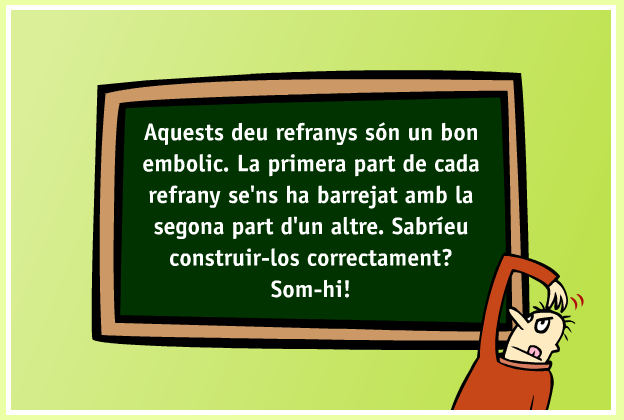 Aquests deu refranys són un bon embolic. La primera part de cada refrany se’ns ha barrejat amb la segona part d’un altre. Sabríeu construir-los correctament?