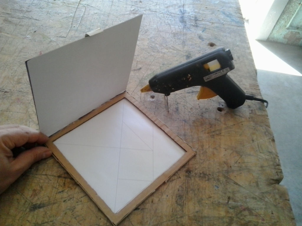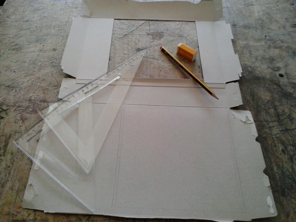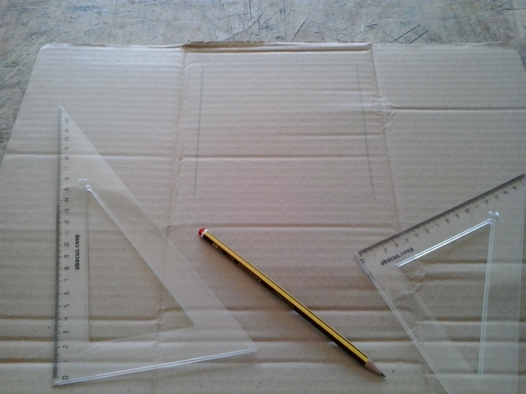 Finalment, només et queda fabricar la tapa. Utilitza de nou el marc que has retallat per a marcar un quadrat al cartró prim. Posteriorment, marca dues pestanyes de 5 mm de gruix, tal i com es mostra a la següent imatge.