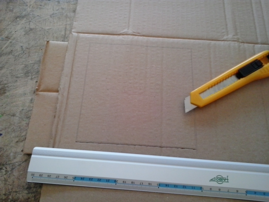 De nou, amb l’ajuda d’un cúter i el regle metàl·lic, talla el cartró seguint el traç dibuixat. Recorda col·locar un tros de cartró a sota per tal de protegir el banc de treball i no ratllar-lo.