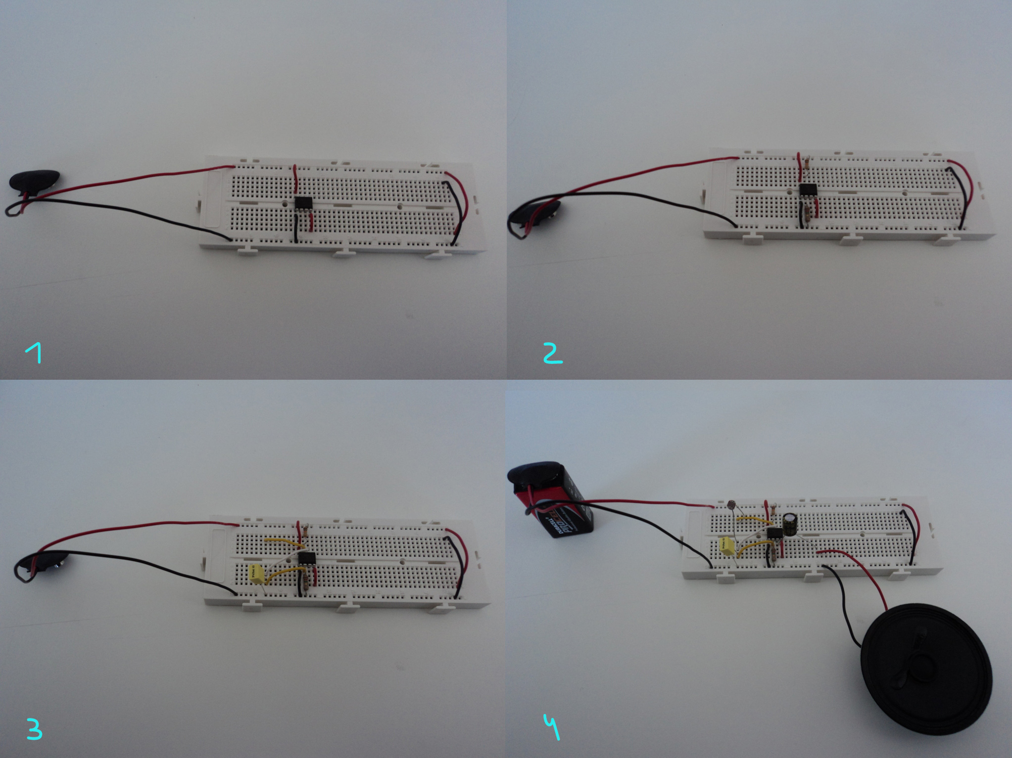 Seguidament, es detallen els passos que hauràs de seguir per a construir el teu theremin, acompanyats d’una imatge d’ajuda per al seu muntatge:
