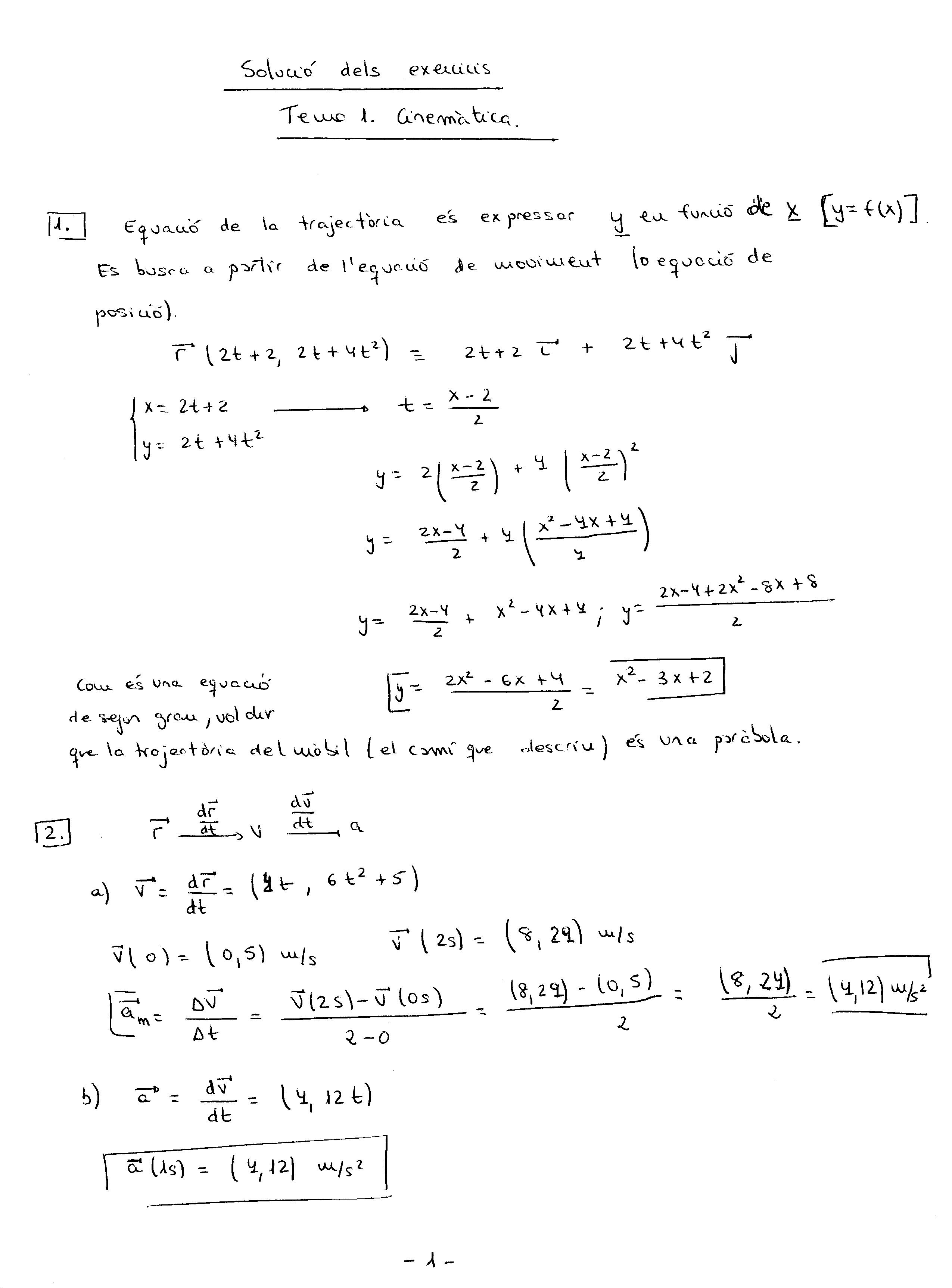 Tema 1. Cinemàtica Classe dv 25/09/09