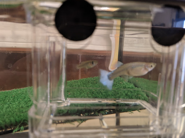 A més a més hem descobert que una de les Gupies que tenim, la Brillant, te ous fecundats a la panxa (es un peix ovovivipar) i l’anem col·locant cada tarda a la paridera per si naixessin mentre no hi som que no se’ls mengés.