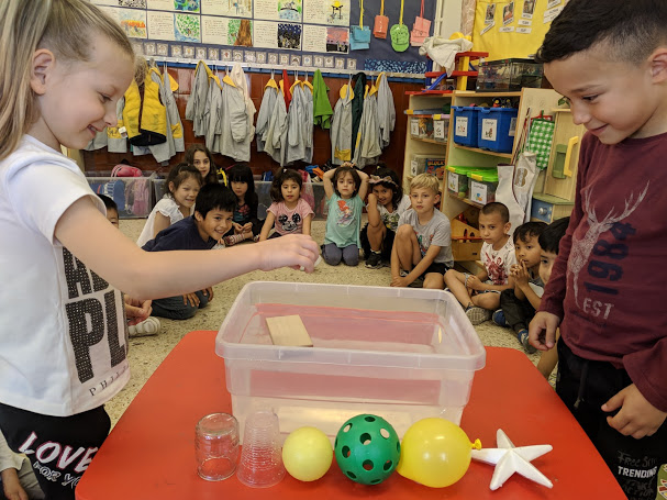Amb el projecte dels Peixos seguim aprenent moltes coses noves, per exemple, vam fer un experiment amb una ampolla, un globus i unes canyetes que ens va servir com funcionava la Bufeta Natatòria que es l’òrgan que permet als peixos nedar amunt i avall a voluntat. I ja que hi erem vam realitzar un experiment de flotació amb diferents elements, tan de plàstic, vidre, metall, fusta fent teories sobre la seva flotabilitat i després comprovant-les.