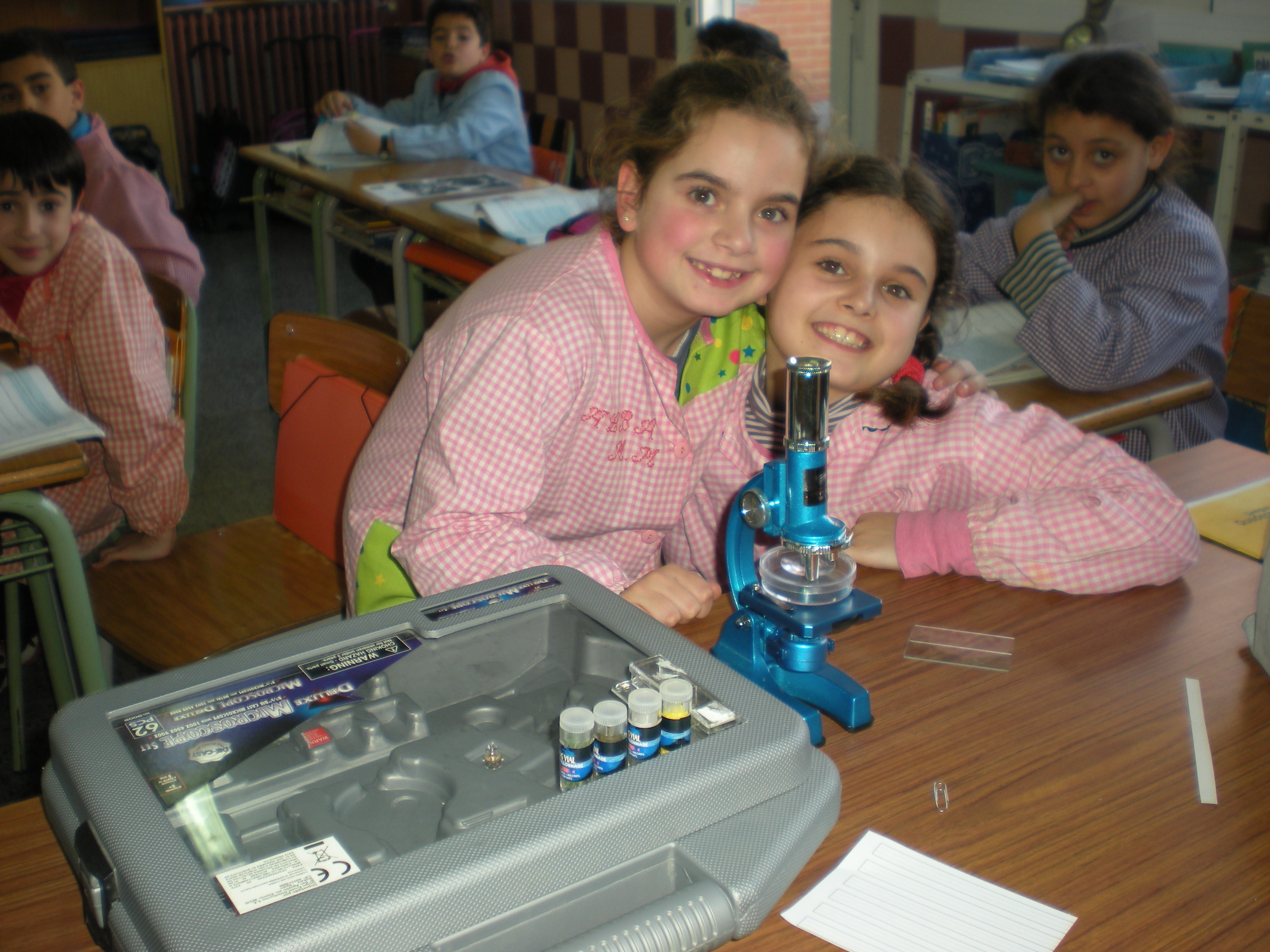 Tal i com ho feia Charles Darwin, nosaltres també investiguem i observem mirant el microscopi. Aquestes dues alumnes es van oferir per buscar mostres, col.locar-les i fer que tota la classe les mirés. Ens ho vem passar molt bé. Moltes gràcies !