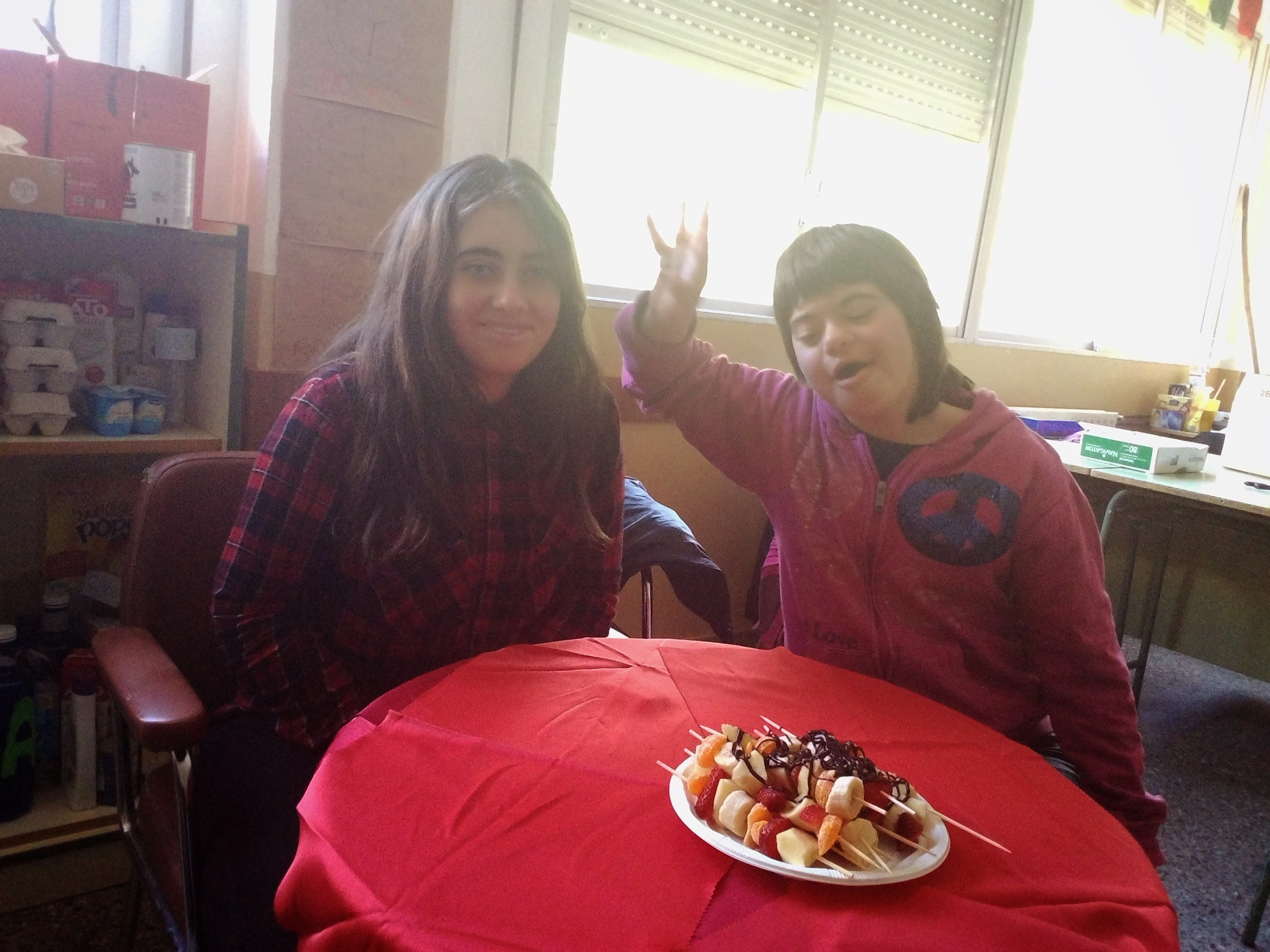 La Mar ha ensenyat a la Marta a fer broquetes de fruita. Ummm!