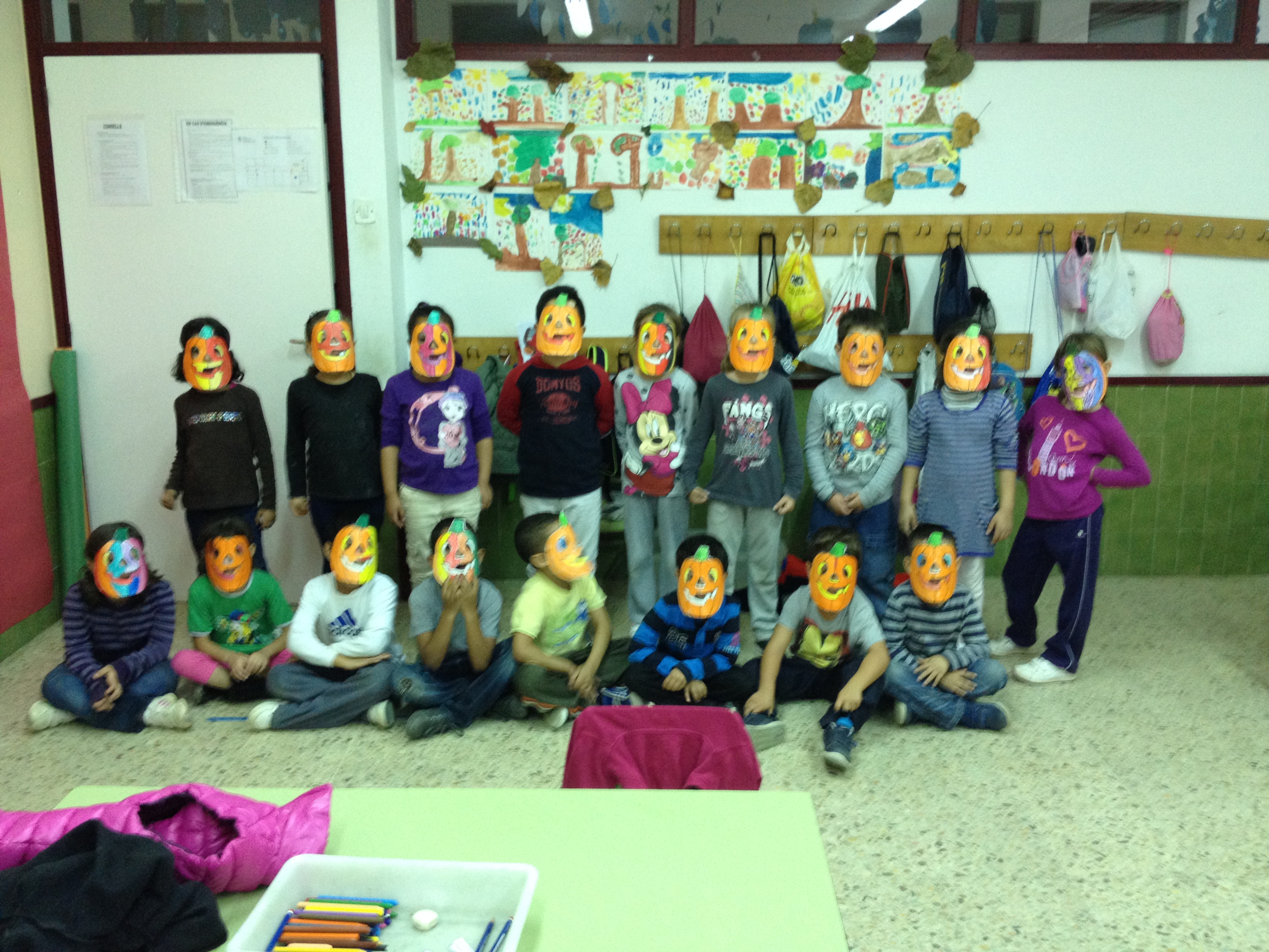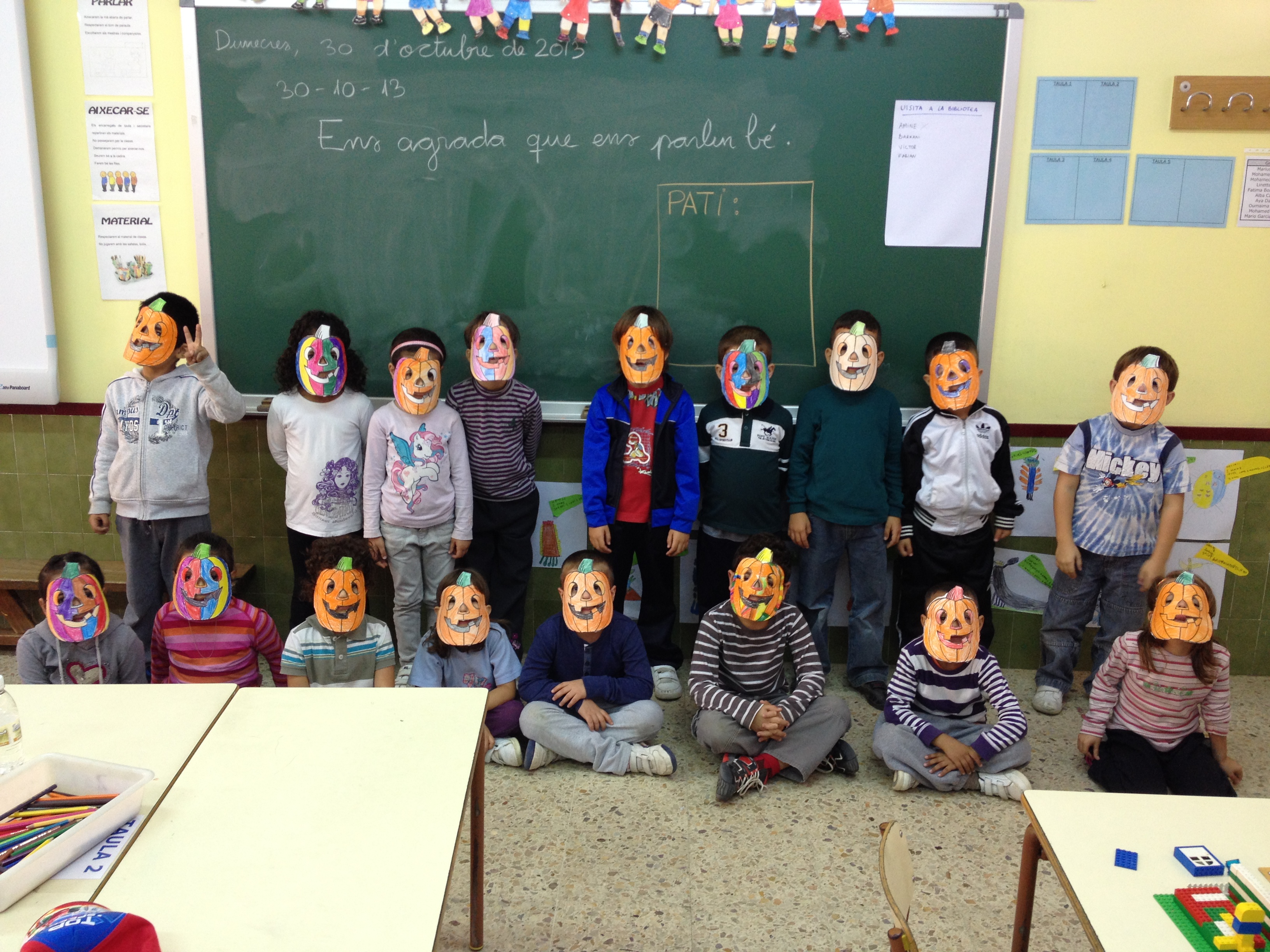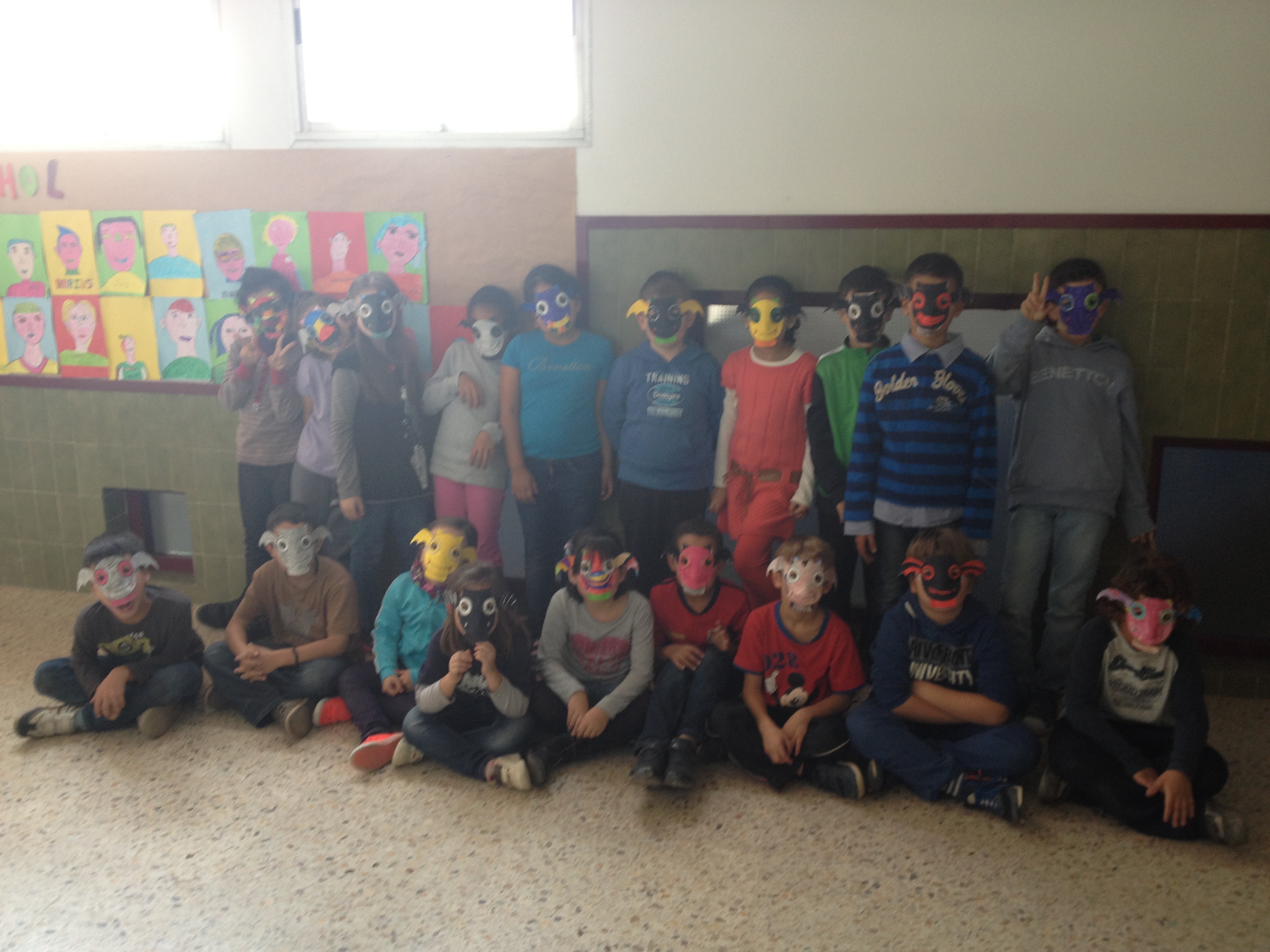 i a la classe d’anglès ens hem fet unes màscares terrorífiques…