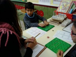 Aprenem a descompondre nombres en desenes i unitats, a fer sumes i restes i a utilizar la calculadora. A l’hora de matemàtiques també aprenem jugant.