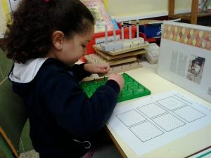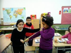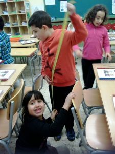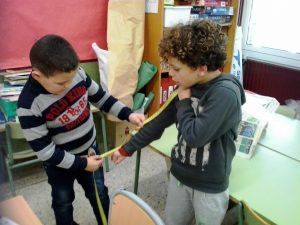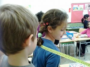 Aquest curs, hem engegat una nova sisena hora per reforçar i ampliar els continguts matemàtics. Aprenem mates, manipulant material reglat i no reglat… Us oferim unes quantes imatges. Treballem amb el geoplà i ens mesurem…