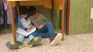 Aquest dies comença a fer bo. El solet i la temperatura conviden a fer activitats a l’exterior i no hi ha res més gratificant que llegir una estoneta al pati de la nostra escola.