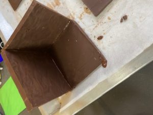 5 . Comenceu a crear la vostra figura. (Per enganxar diverses parts de xocolata sòlida, podeu utilitzar una mica de xocolata desfeta com si fos pega)