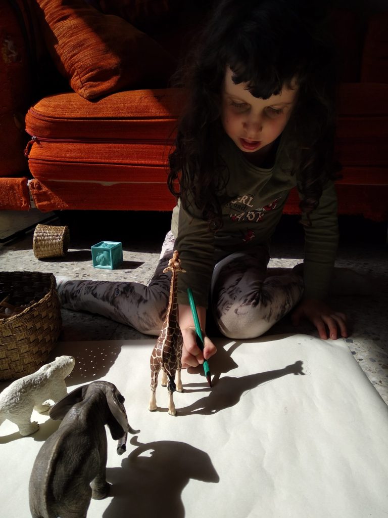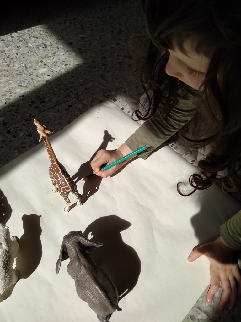 Esperem que estigueu totes bé, us fem una proposta molt senzilla per aprofitar el solet que ens entra per la finestra. Es tracta de col·locar petits objectes sobre un full de paper i dibuixar el contorn de l’ombra que projecten. Nosaltres hem fet servir animals de plàstic. Podeu observar què passa amb diferents angles de llum en diferents moments del dia, o fent servir una làmpara de sobretaula. Després podeu pintar les siluetes o retallar-les.