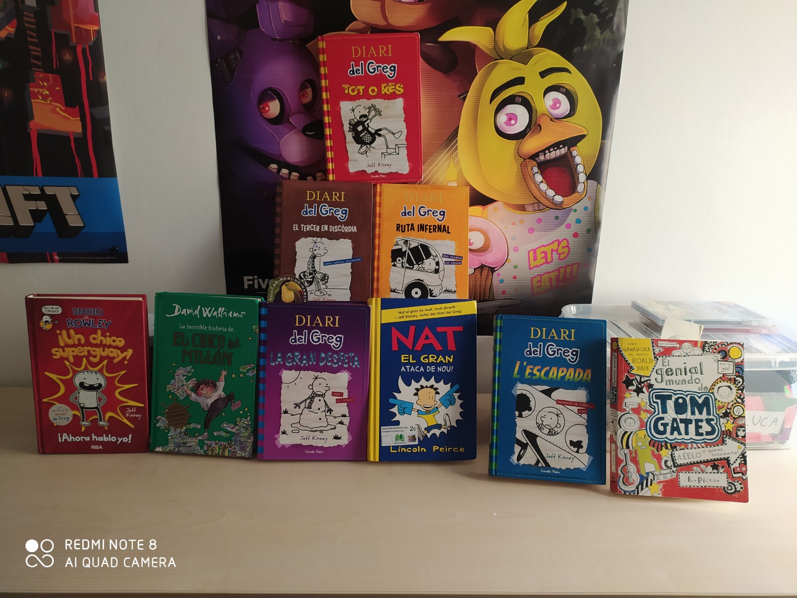 AL ESTAR AQUI CONFINAT HE COMENÇAT A LLEGIR ENCARA MÉS DEL QUE JA LLEGIA ABANS I M’HE ACABAT EL LLIBRES EN 1 MÉS. A MI M’AGRADEN MOLT LES NARRATIVES, COM EL DIARI DEL GREG O TOM GATES, O DE HISTÒRIES COM ELS DE DAVID WALLIAMS.  QUAN ACABI EL CONFINAMENT EM VULL COMPRAR MÉS DE LA SÈRIE DE NAT EL GRAN, QUE M’HE LLEGIT UN I M’HA AGRADAT MOLT. HE LLEGIT TAMBÉ UNA NOVEL·lA DE STAR WARS PERÒ ÉS UNA MICA VIOLENTA PERQUÈ VA COM D’UNS ZOMBIS QUE HI HA A UNA NAU ETC… TAMBÉ LLEGEIXO CÒMICS PERÒ HE DE COMPRAR ELS QUE SEGUEIXEN I HAURIA D’ ANAR A LA BOTIGA DE NORMA COMICS I NO PUC PERQUÈ ESTÀ TANCAT, ESTÀ MOLT LLUNY I NO ES POT SORTIR.