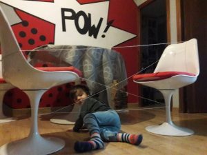 NOMÉS NECESSITEU UNA CORDA I DOS CADIRES. HEU DE PASSAR LA CORDA AGUANTADA PER LES DOS CADIRES FENT UNA MENA DE XARXA, EN LA QUAL QUEDARAN FORATS. EL JOC CONSISTEIX EN PASSAR PER AQUEST FORAT SENSE TOCAR LA CORDA, JA QUE QUI LA TOCA PERD. S’HA DE TENIR MOLT D’EQUILIBRI! IMAGINEU QUE ESTEU INTENTANT ENTRAR A UNA CAMBRA CUIRASSADA D’ALTA SEGURETAT I LES CORDES SÓN ELS LÀSERS DE CONTROL DE MOVIMENT, AIXÍ SEGUR QUE NO TOQUEU LA CORDA…