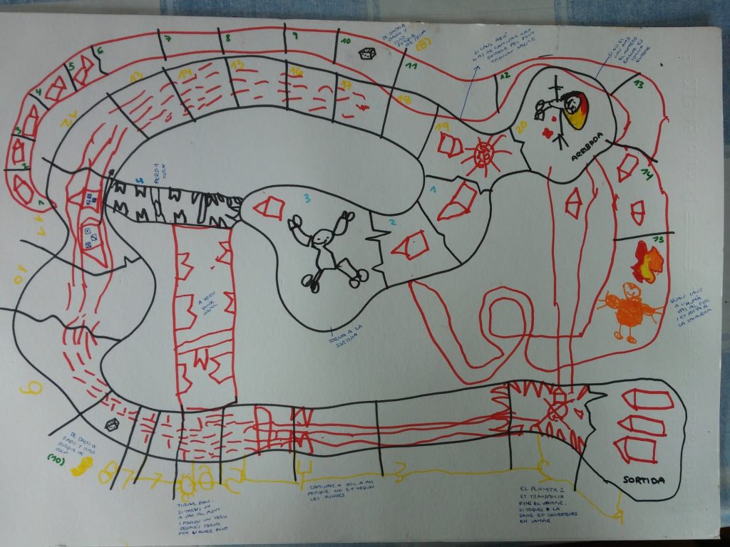 Inventar joc de taula, dibuixar-lo, decidir normes i jugar-hi.