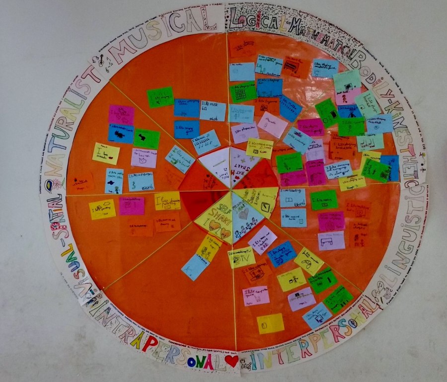 Let’s think about our intelligences. We have spoken about what do we think “intelligence” is, and in teams we think together about our strengths and our favourite activities. Our friends from Finland proposed to create this intelligences wheel… Here you can see Finnish wheel, Turkish wheel and finally, our wheel.