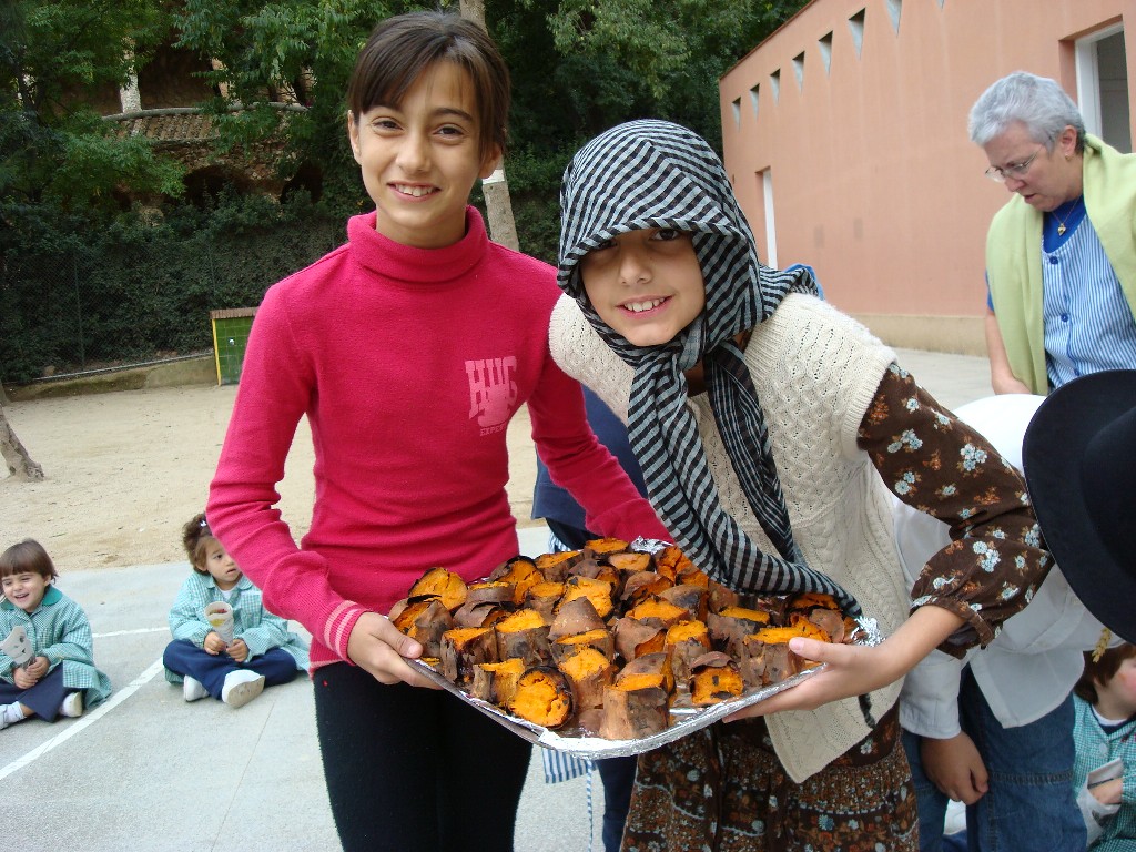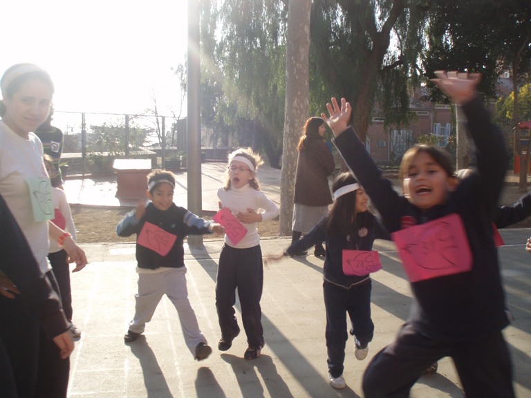 A continuació els alumnes de sisè ens van reunir a cada curs i vam fer uns exercicis d´escalfament per la cursa.