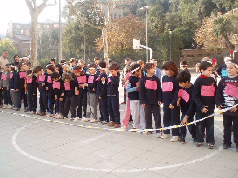 A primera hora del matí els mestres ens van reunir al pati per fer un minut de silenci. Després, un representant de cada curs va llegir un petit manifest per la pau. Tothom els vam escoltar atentament; van estar uns minuts molt emotius.