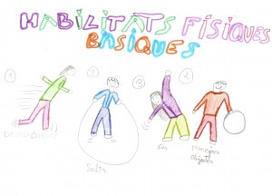 Al llarg d’aquest segon trimestre, els quatre grups de 3r i els tres de 4t, estem realitzant activitats i jocs en què practiquem els quatre grups d’Habilitats Físiques Bàsiques existents: els desplaçaments, els salts, els girs i el maneig o control d’objectes.
