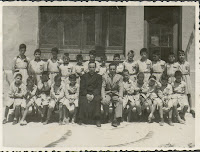 Aquesta és la fotografía sencera de la que he posat al inici. Els finals de curs a l’Escolania eren molt importants. A dintre la corona hi ha el referent del pare: Mn. Jaume Balmes.Els "vales"