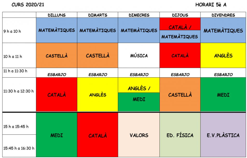 Horaris 5è