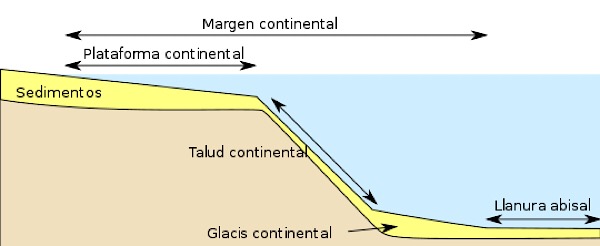 En tots els planisferis els continents estan dibuixats seguint la línia de costa, el límit entre la Terra emergida i la submergida, però en realitat els continents són molt més del que sembla a la imatge anterior, doncs els límits reals dels continents són al fons dels talusos continentals, a sota del mar: