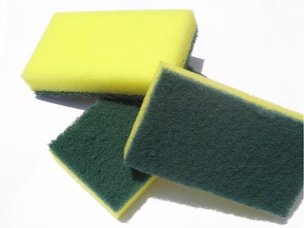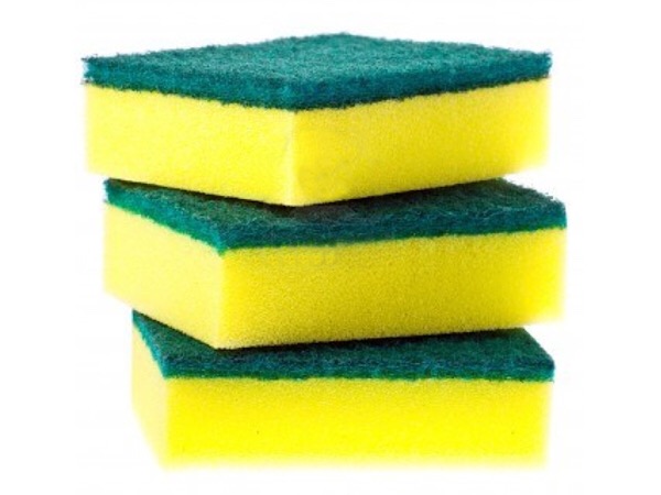 Des del principi us haureu preguntat què tenen a veure uns fregalls amb els marges actius de les plaques litosfèriques. Els fregalls com els de la fotografia següent, amb una escuma groga i una fibra verda, seran perfectes per a representar la litosfera. La fibra verda correspondrà a l’escorça i l’esponja groga correspondrà a la part rígida del mantell que es troba sobre l’astenosfera i que, conjuntament amb l’escorça, forma la litosfera.