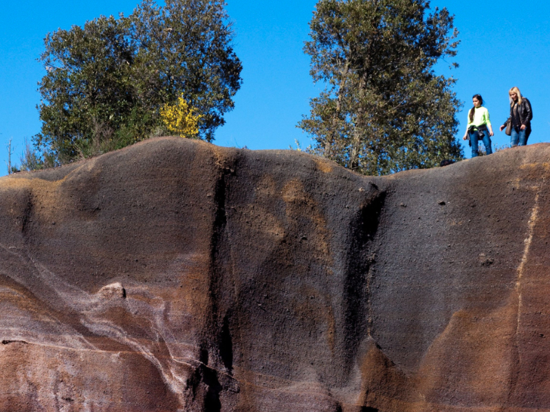 - Fixa’t en les formes generals, en les textures i en les estructures de les roques que apareixen a la foto. Fes un llistat de tot el que consideris geològicament rellevant. És molt útil fer dibuixos esquemàtics del que observes.