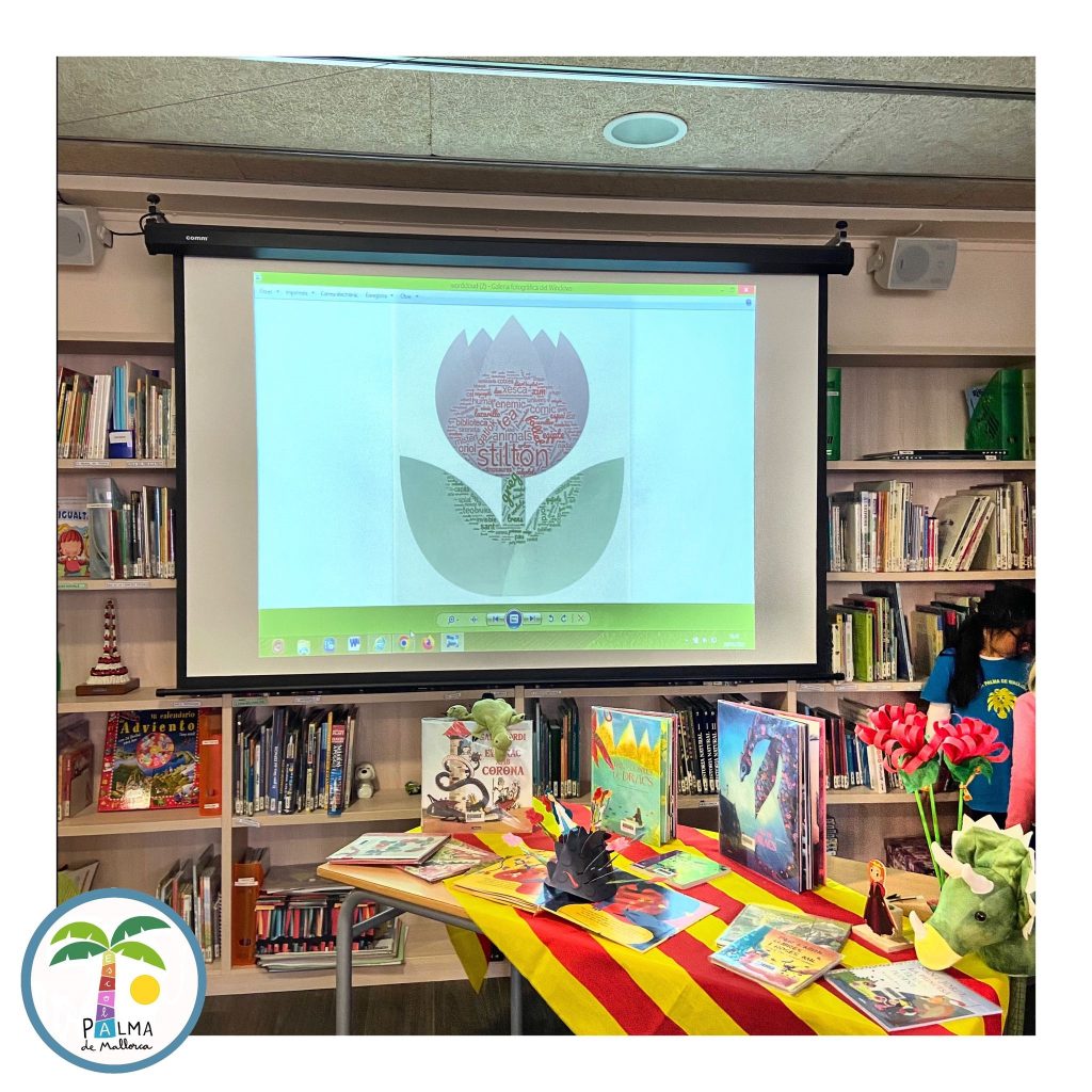 Aquesta setmana es tot una festa a la biblioteca , fent un munt d’activitats. Els infants de Cicle Mitjà i Superior han construït un núvol de paraules . Han triat el personatge, el llibre i el tema que més els ha agradat del que han llegit aquest curs.