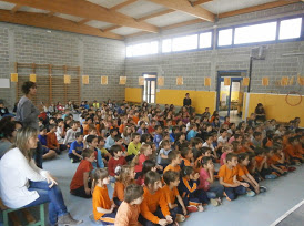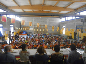 0Com si es tractes d’un gran esdeveniment i amb una posada en escena com la de les grans ocasions ( jurat assegut en cadires de fusta, la taula que aguantava els premis, plegable, deixada per l’ajuntament i vestida per l’ocasió amb la senyera catalana , banderoles de plàstic, nens asseguts al terra del gimnàs, micròfon fent algun que altre soroll…) es va fer la entrega dels premis, als nens i nenes de la nostre escola, per haver participat en els Jocs Florals, que com cada any es celebren el dia de Sant Jordi i que esperaven amb il•lusió, per allò de si el seu era el premiat. Com veieu res a veure amb el que estem acostumats a veure per televisió, quan es donen premis oficials en alguna de les sales del Palau de la Generalitat.
