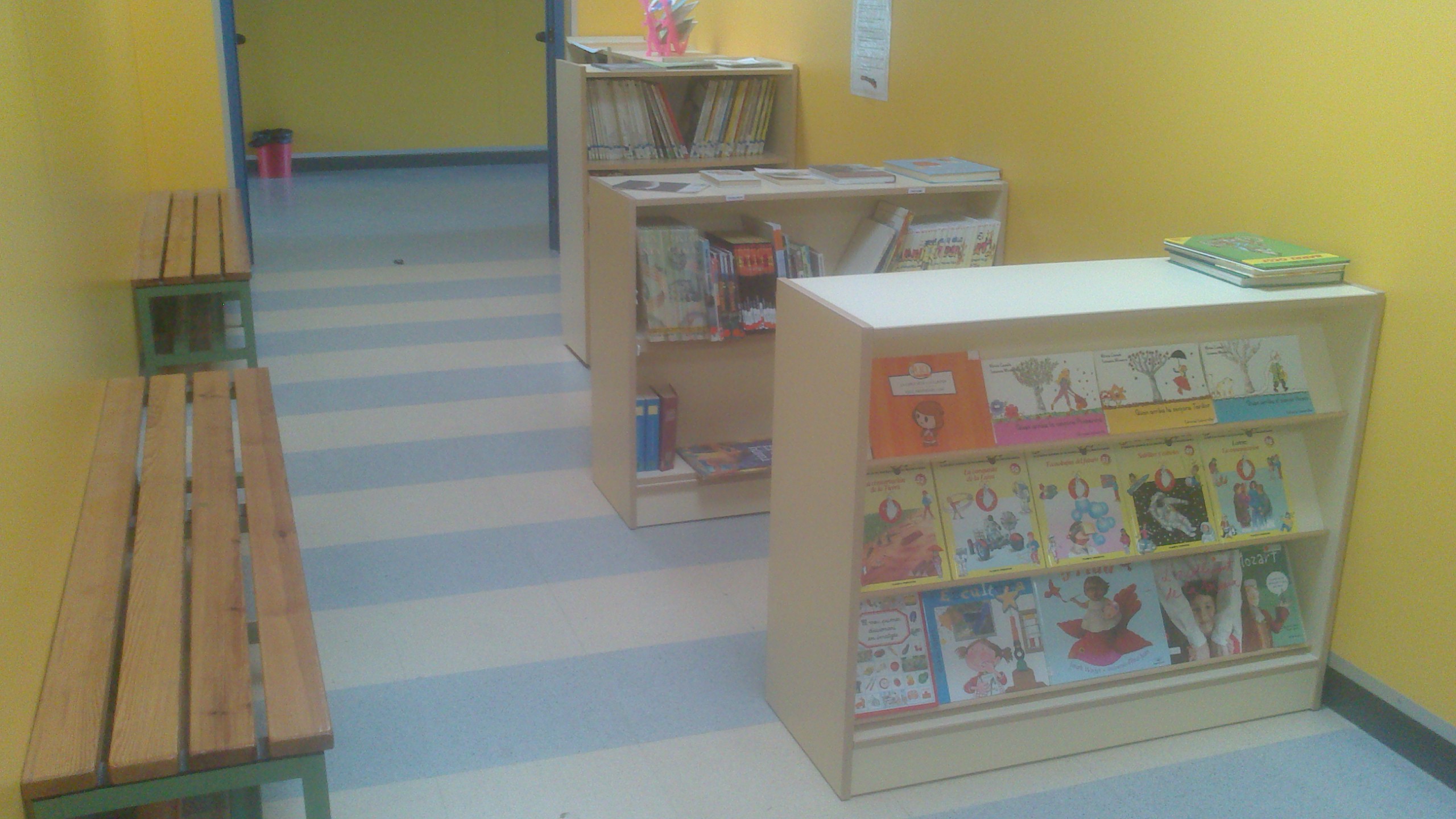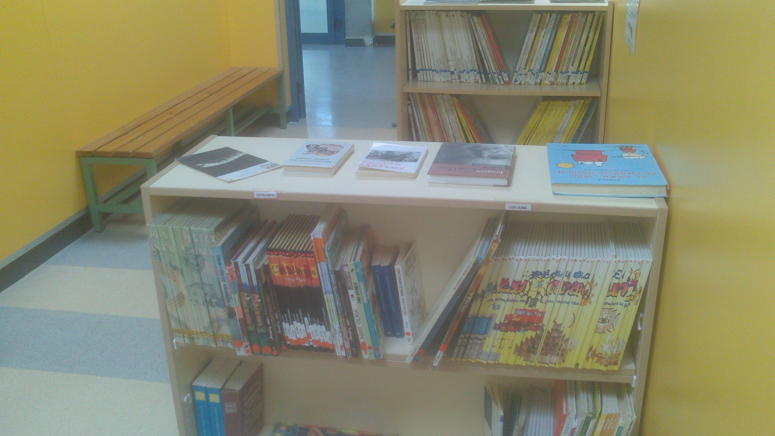 Primer de tot dir-vos que ja NO tenim els llibres al mig de passadís com fins ara. Bé queden els de consulta, còmics, diccionaris …que els hem posat d’una manera coquetona com si fos una mini biblioteca, amb uns bancs per poder llegir.