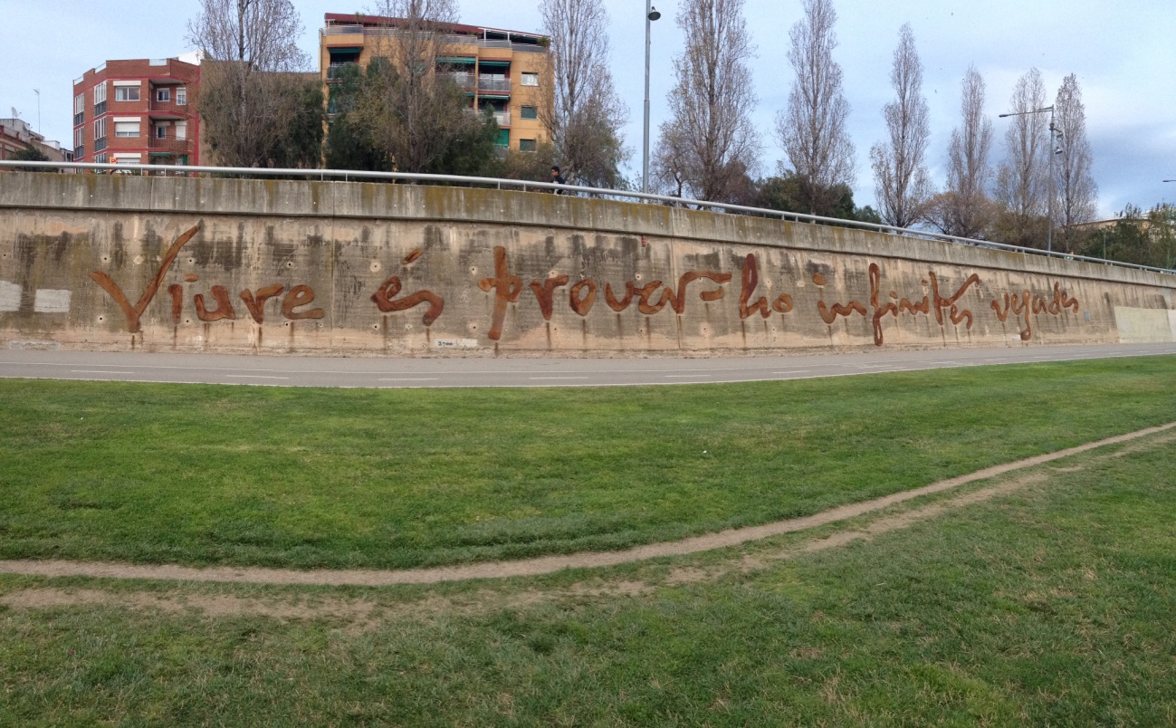 Es tracta d’una petita cita que pertany a un dels poemes de Màrius Sampere. És aquest tipus de passatge que t’anima a continuar a endavant i ser constat. Aquest petit vers diu «Viure és provar-ho infinites vegades » i es troba dins de la localitat de Santa Coloma de Gramanet.