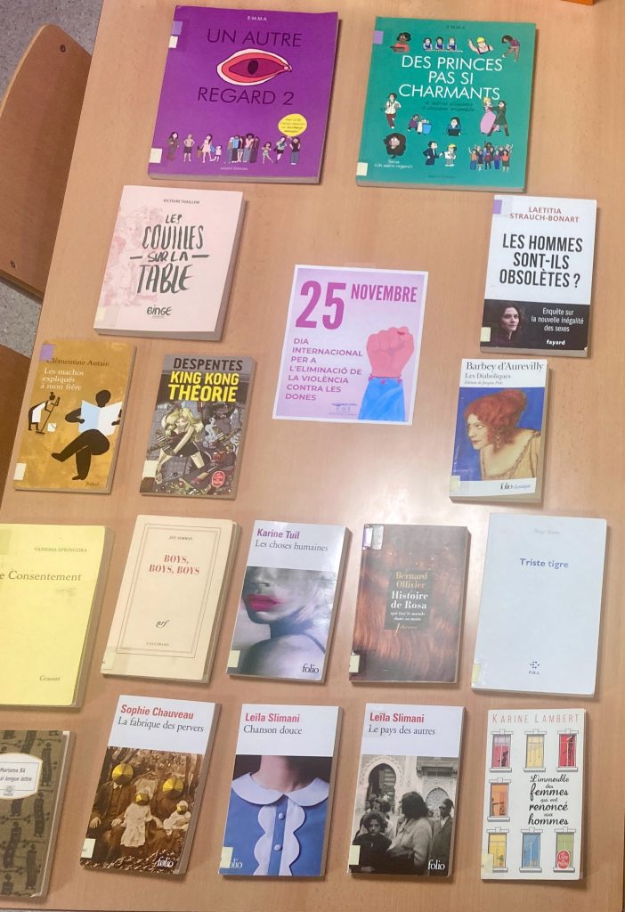 Amb motiu del Dia Internacional de l’Eliminació de la Violència contra la Dona, la biblioteca de l’escola posa a disposició de tota la comunitat una selecció especial de llibres en francès i anglès que conviden a la reflexió (cliqueu aquí per veure el vídeo). Són històries que il·luminen realitats diverses, però sempre amb un mateix compromís: donar veu a les dones i qüestionar les estructures que perpetuen la violència i la desigualtat.